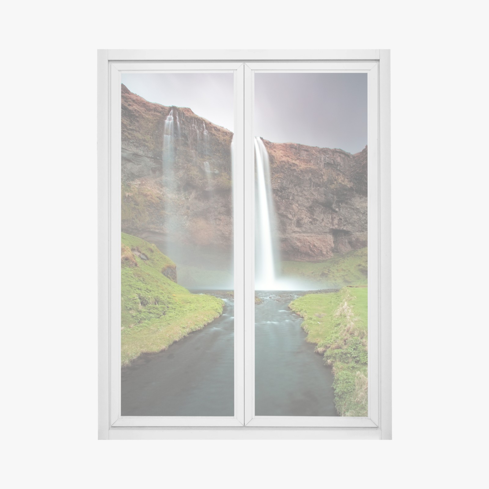 Fensteraufkleber Nebeliger wasserfall im üppigen tal