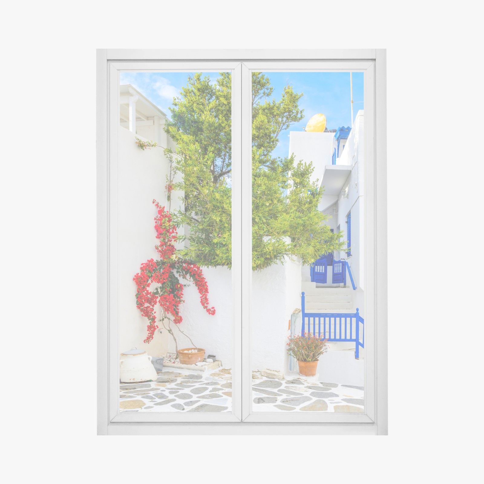 Fensteraufkleber Sonniger mediterraner innenhof mit bougainvillea