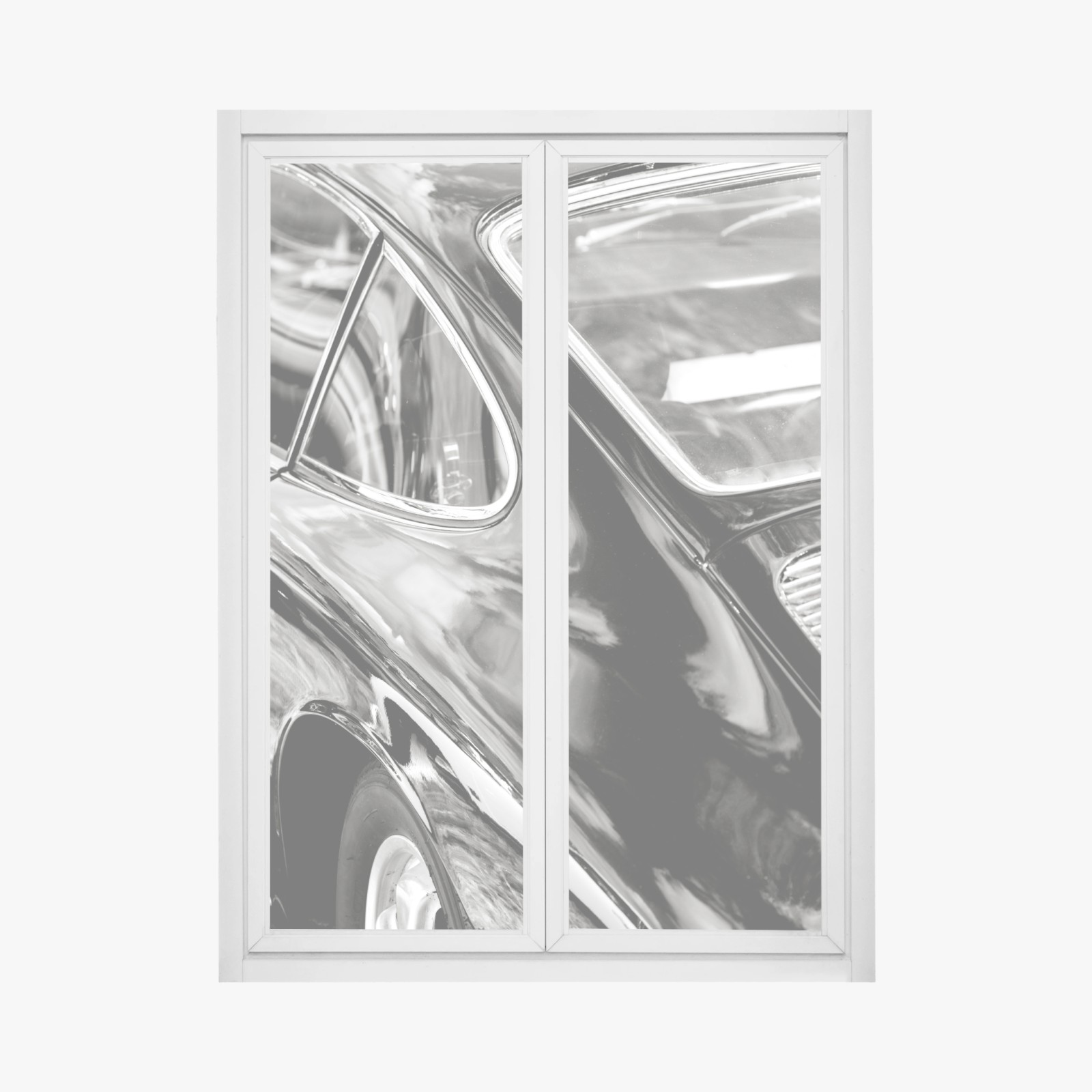 Fensteraufkleber Oldtimer rückansicht detail in schwarzweiß