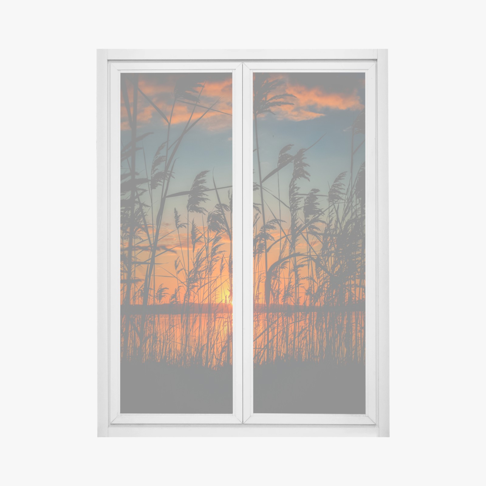 Fensteraufkleber Sonnenuntergang am see mit schilf-silhouette