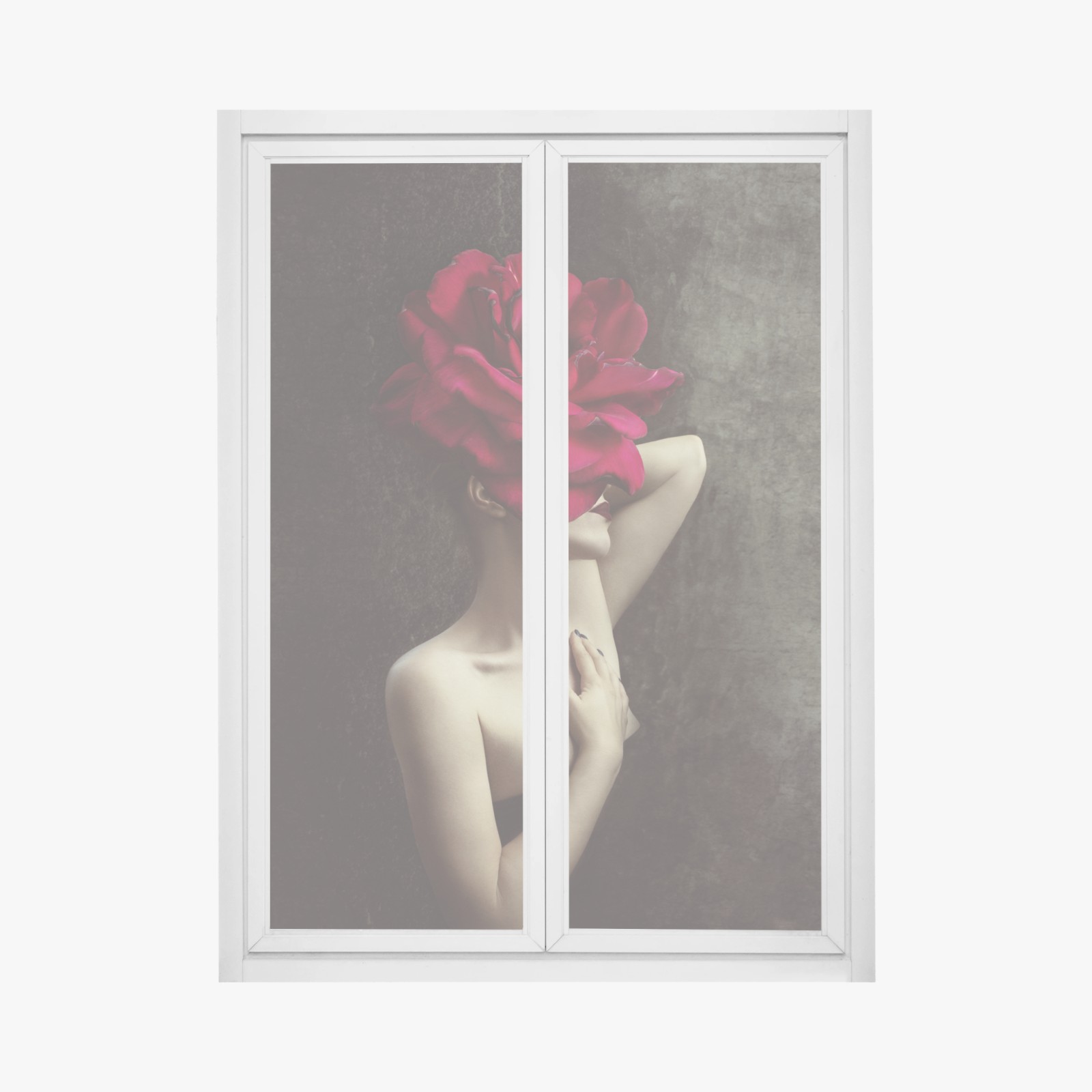 Fensteraufkleber Frau mit rosenkopf surreales blumenporträt