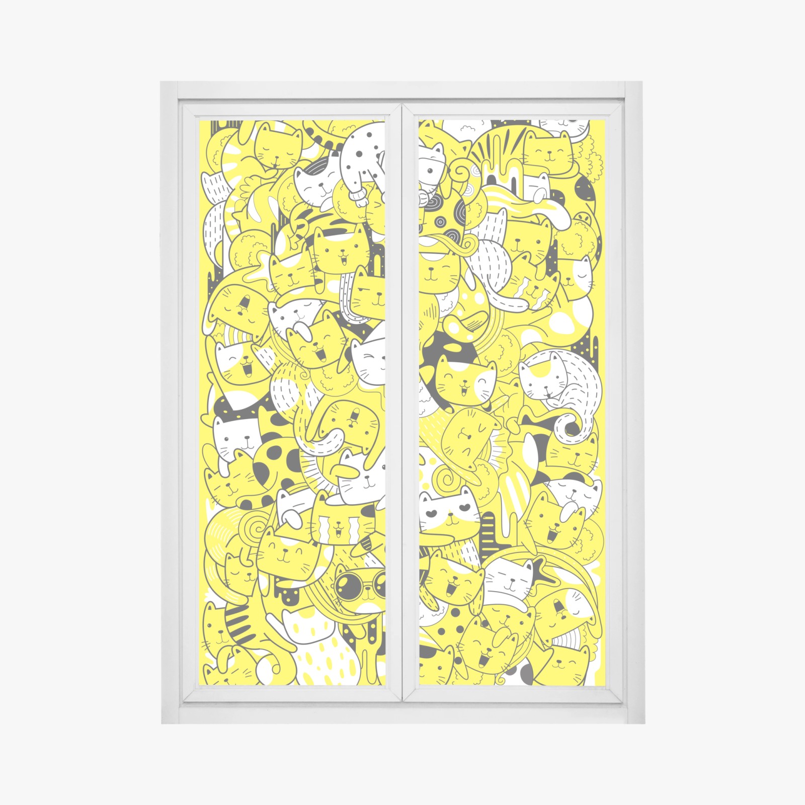 Fensteraufkleber Verspielte gelbe katzen-collage