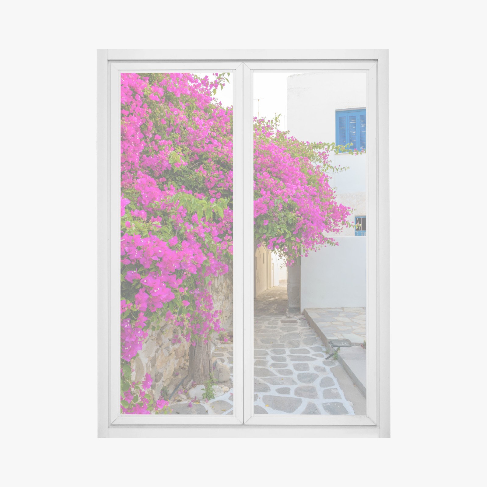 Fensteraufkleber Blühende bougainvillea in Naousa gasse