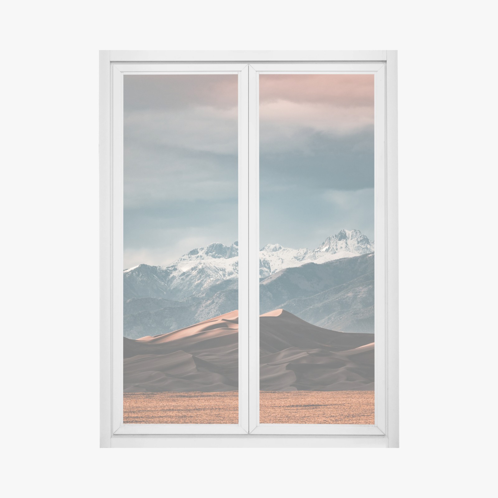 Fensteraufkleber Wüstendünen vor schneebedeckten gipfeln