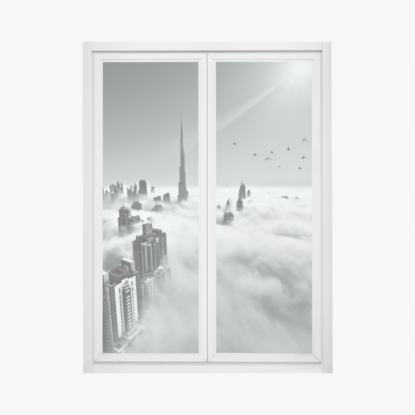 Fensteraufkleber Neblige skyline von Dubai über den wolken