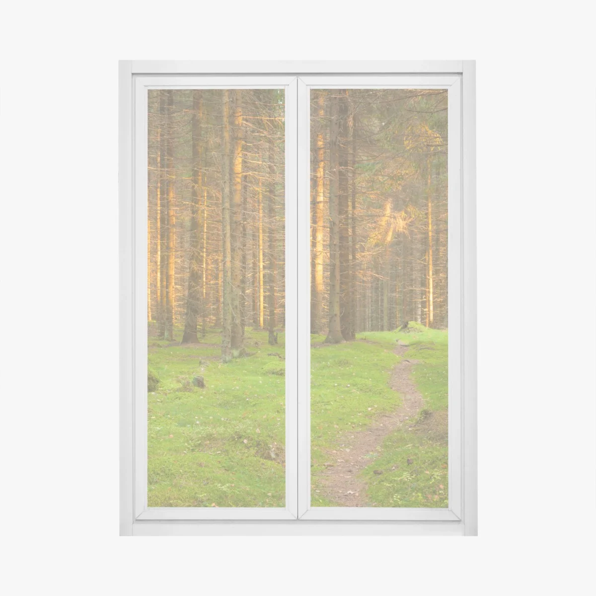 Fensteraufkleber Goldenes licht im moosbedeckten kiefernwald