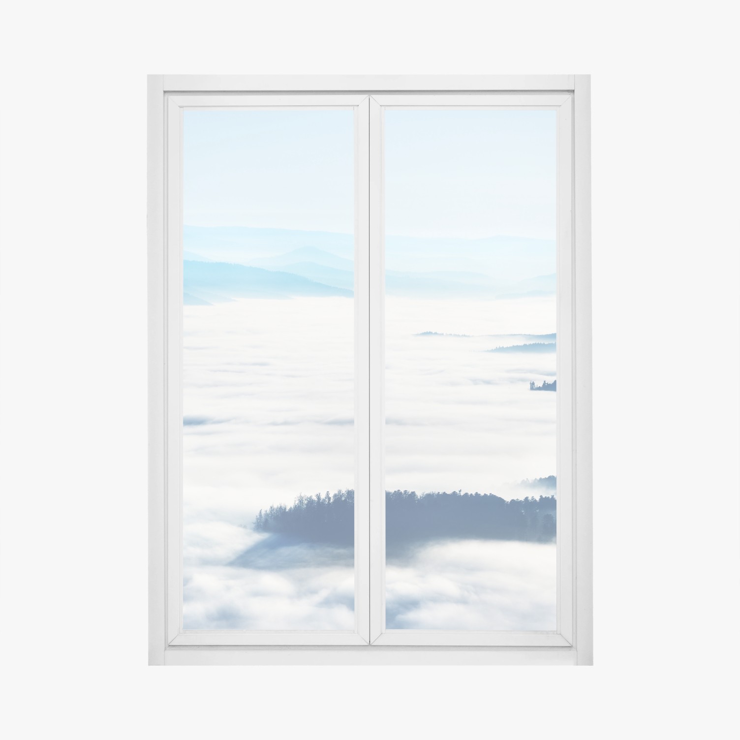 Fensteraufkleber Neblige bergpanorama über dem tal