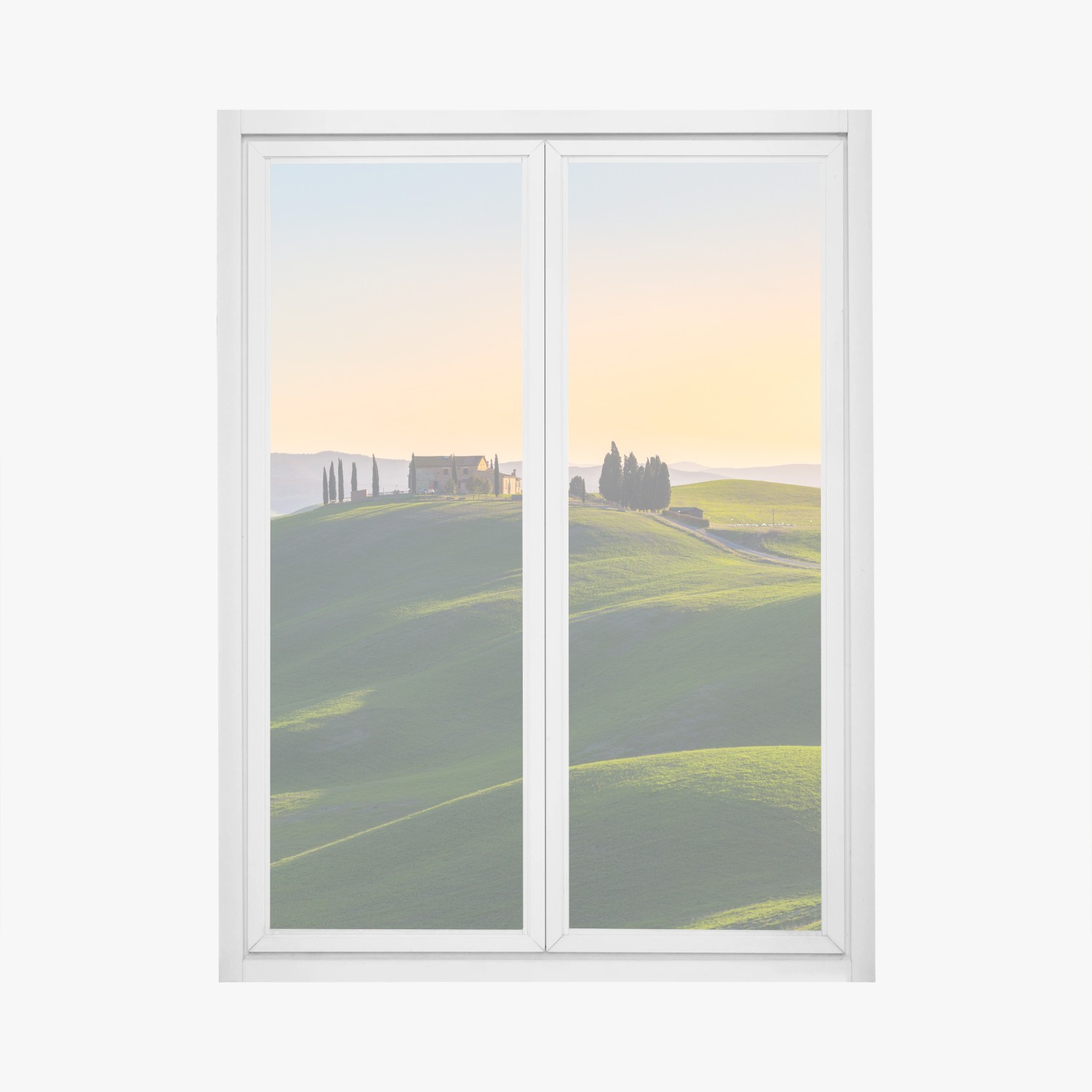 Fensteraufkleber Bauernhaus auf grünen hügeln, Crete Senesi