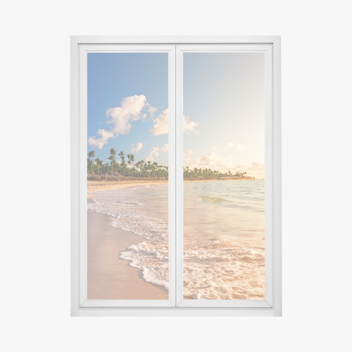 Fensteraufkleber Tropischer sonnenuntergang am strand mit palmensilhouetten
