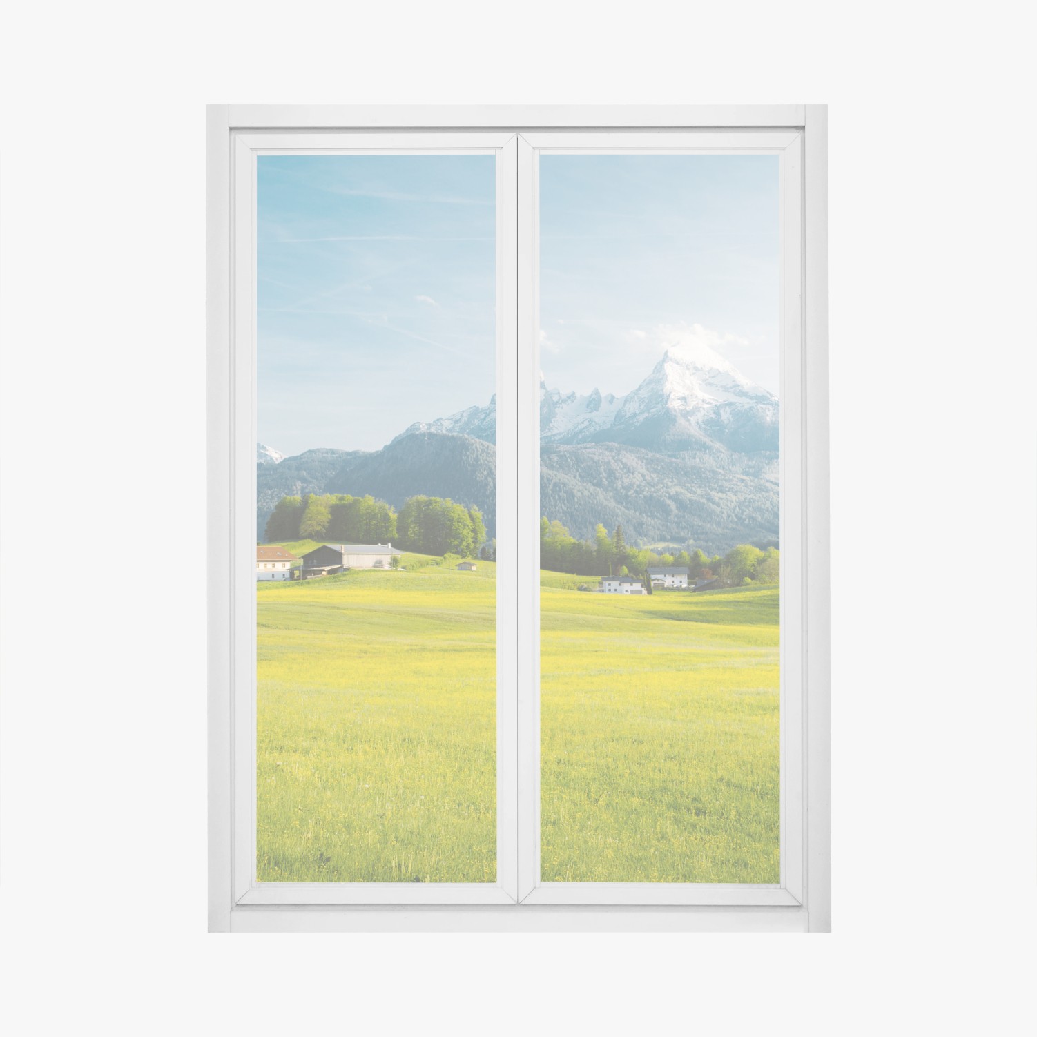 Fensteraufkleber Alpwiese unter schneebedeckten gipfeln