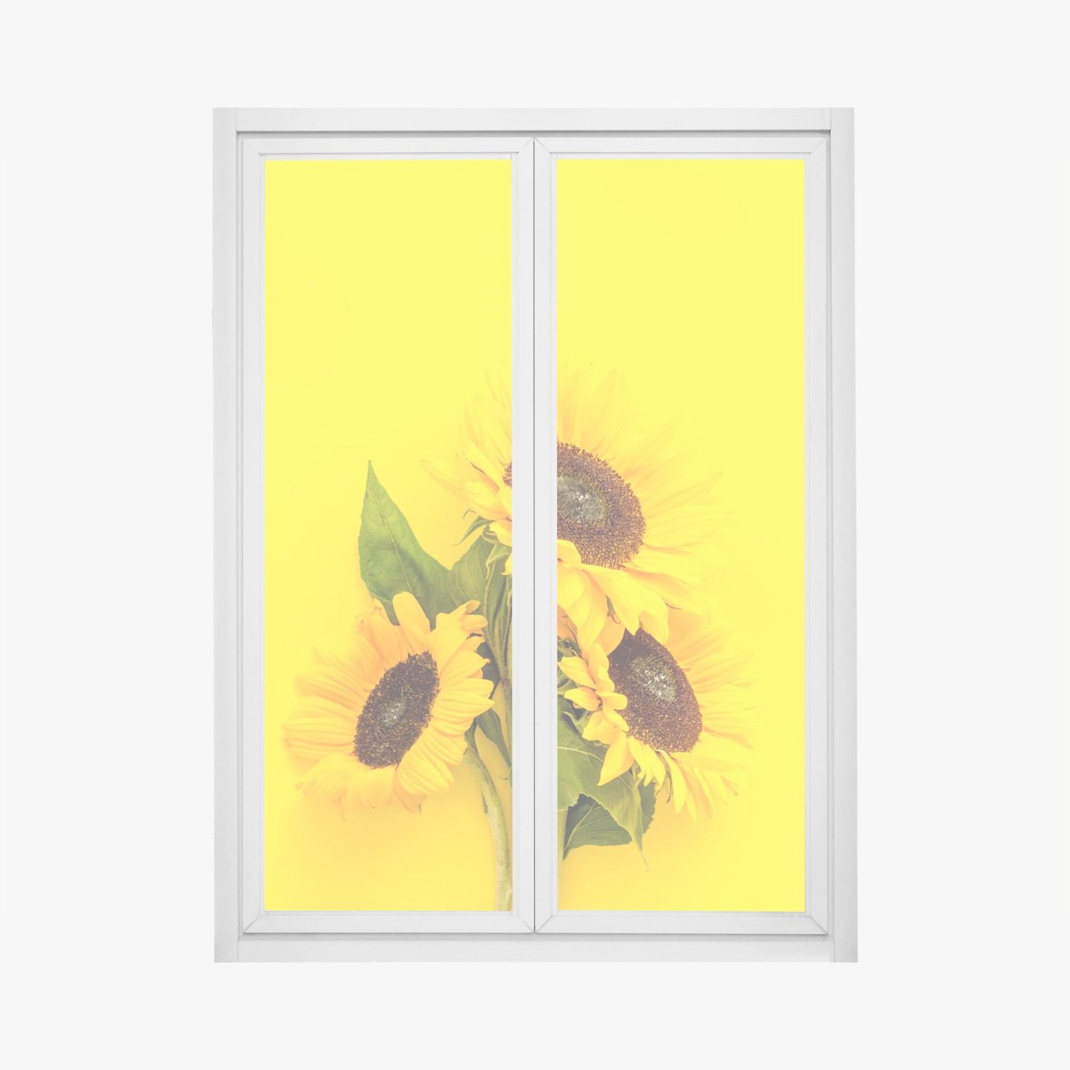 Fensteraufkleber Leuchtender sonnenblumenstrauß auf gelbem hintergrund