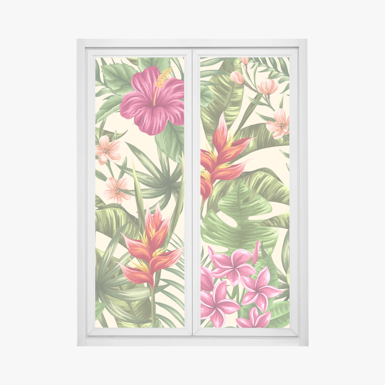 Fensteraufkleber Tropisches blumenmuster mit hibiskus und plumeria