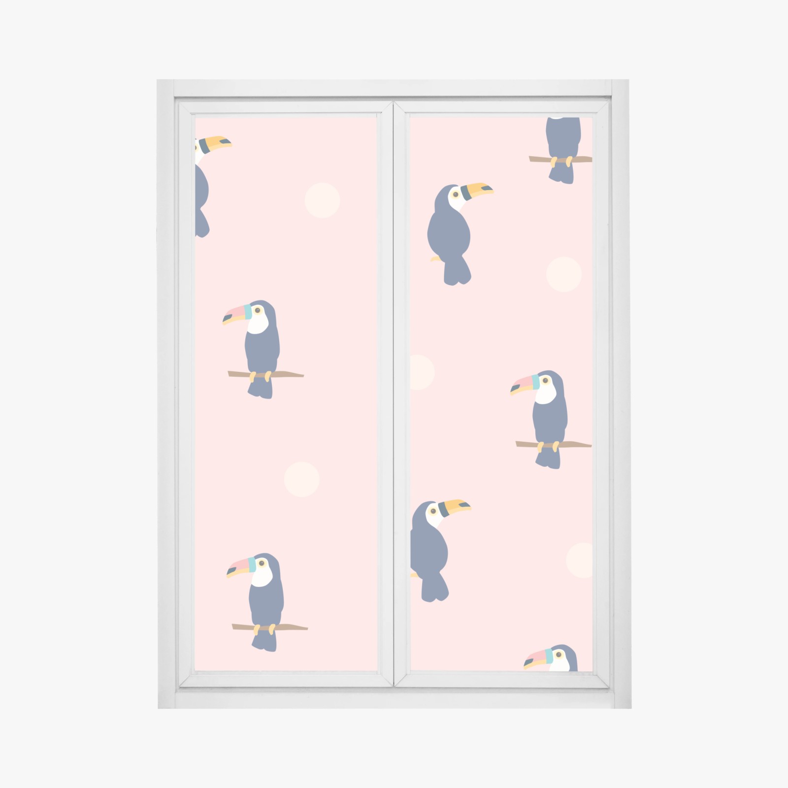 Fensteraufkleber Verspieltes tukanmuster auf pastellrosa