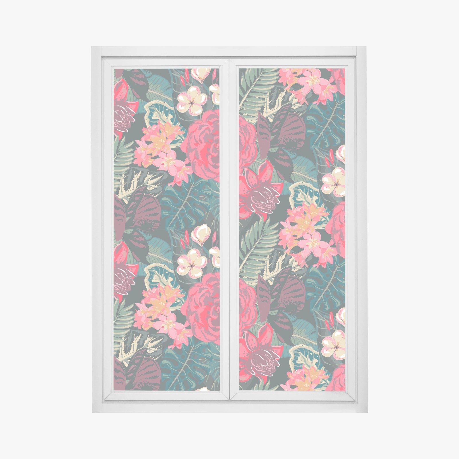 Fensteraufkleber Tropisches blumenmuster in rosa und türkis
