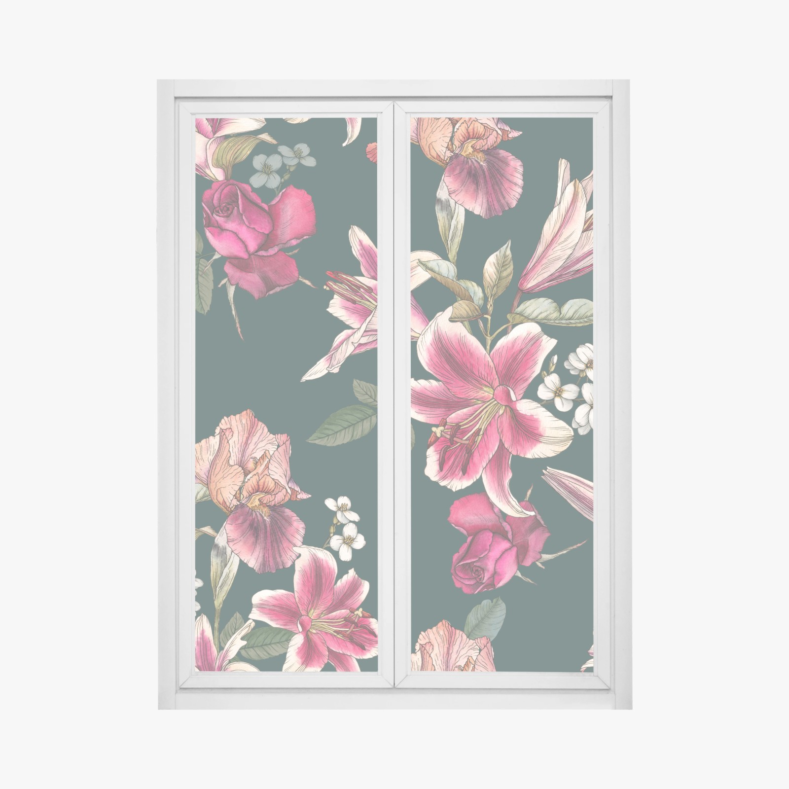 Fensteraufkleber Vintage botanisches floralmuster auf tiefgrün