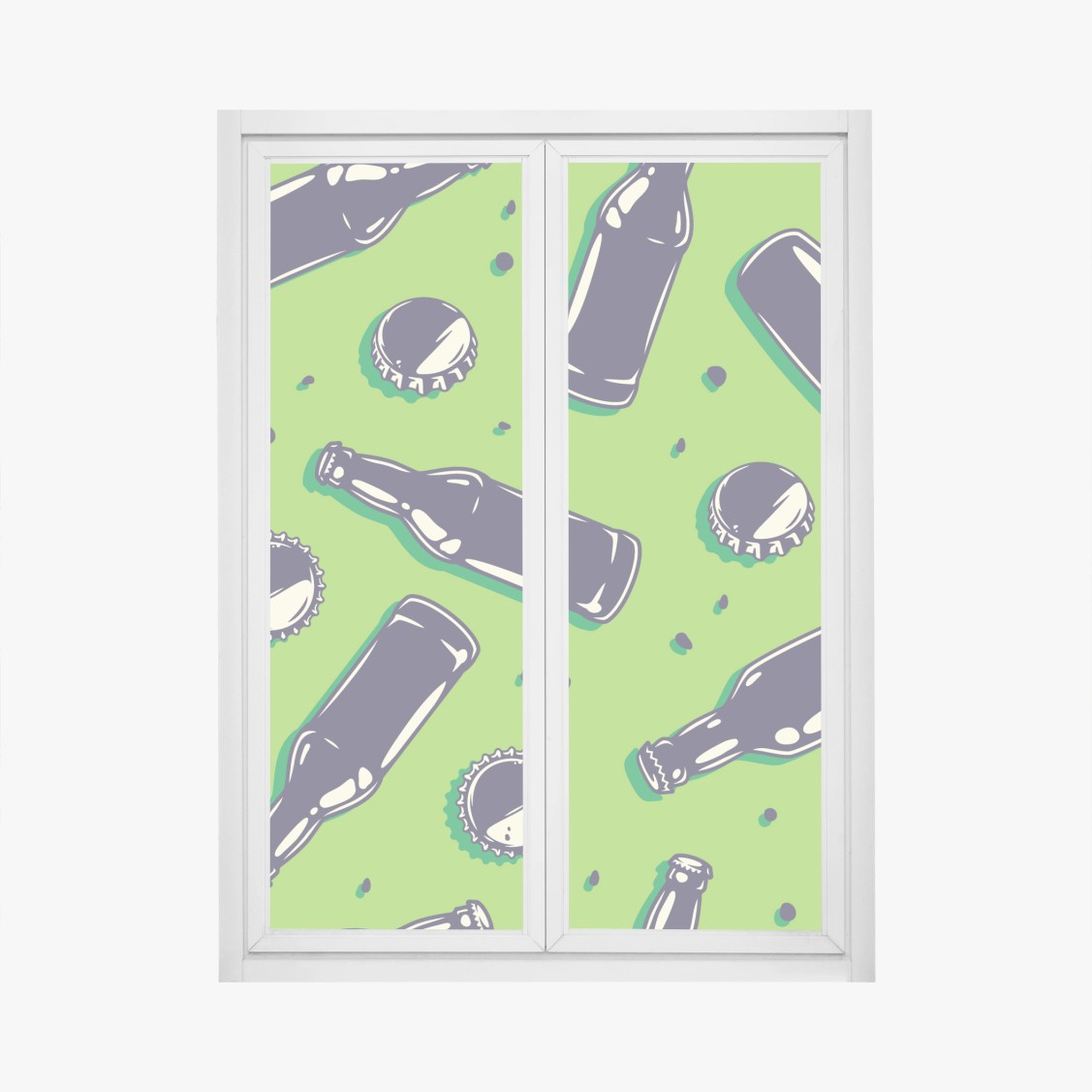 Fensteraufkleber Grünes pop-art-muster mit bierflaschen und kronkorken
