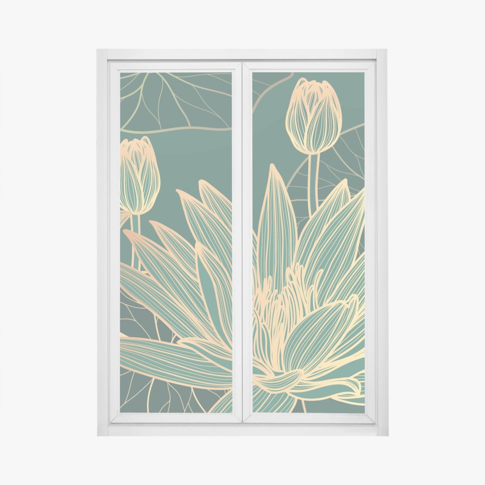 Fensteraufkleber Goldene lotosblüten auf grünem hintergrund