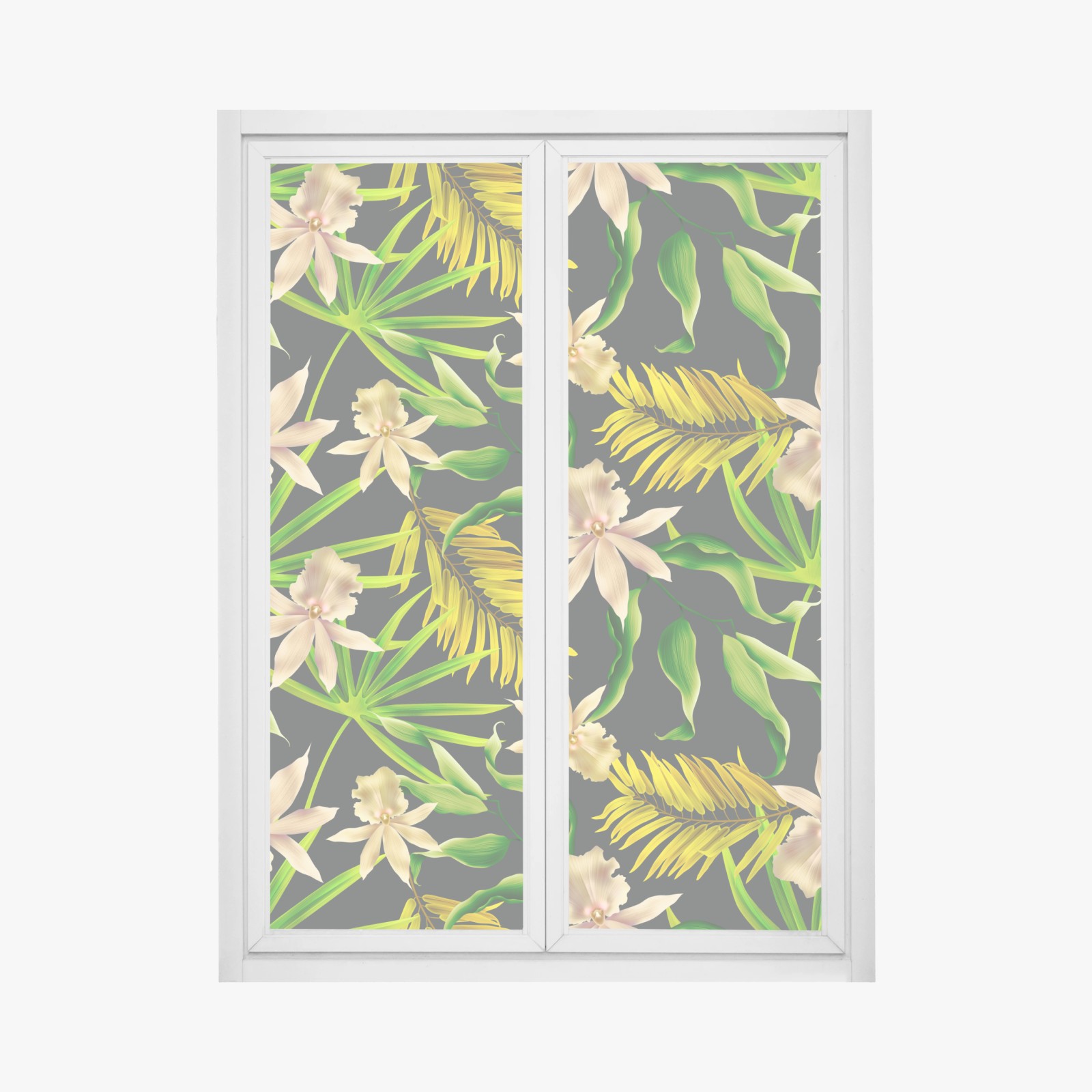 Fensteraufkleber Tropisches orchideenmuster auf dunklem hintergrund