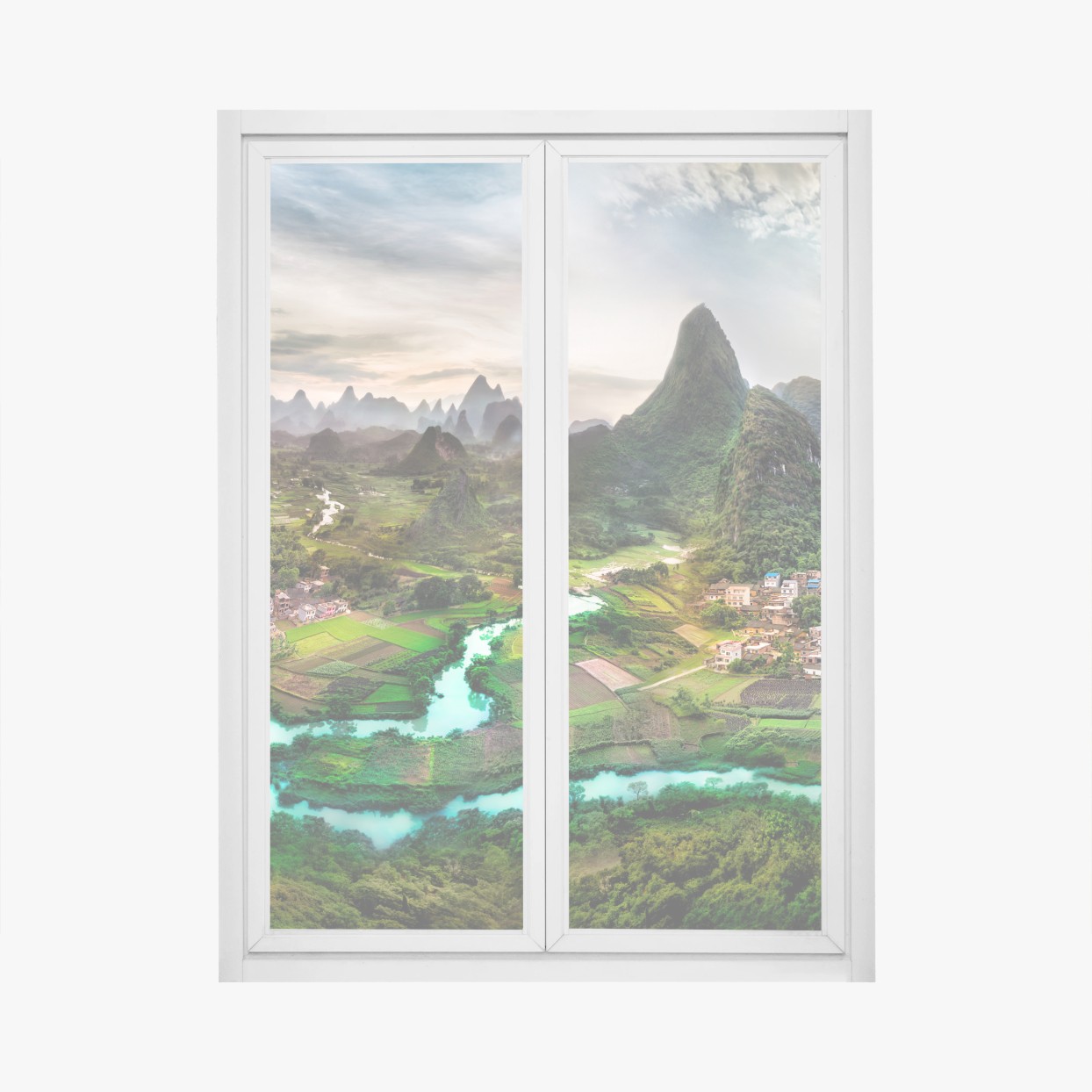 Fensteraufkleber Smaragdfluss zwischen karsthügeln panorama
