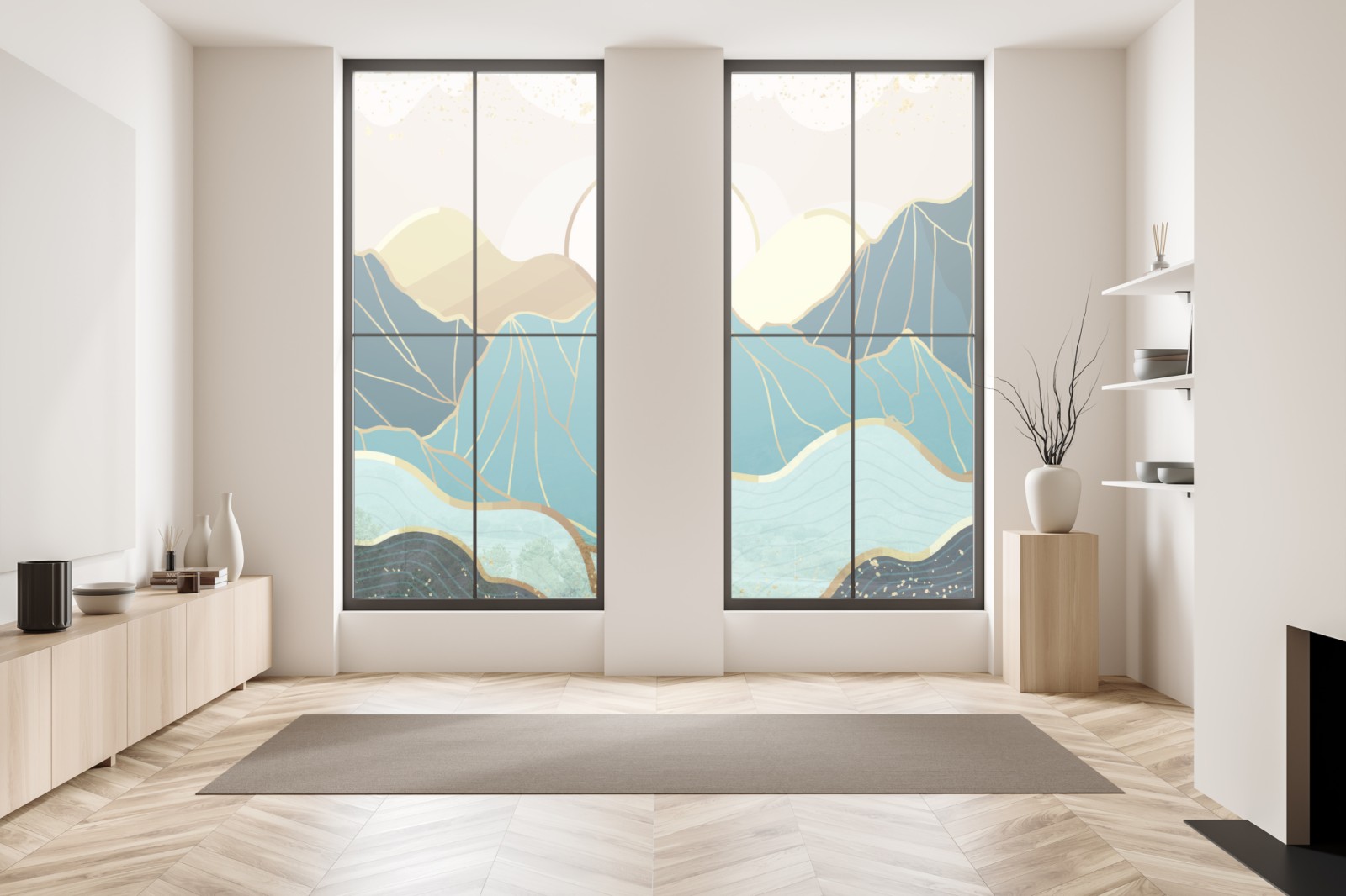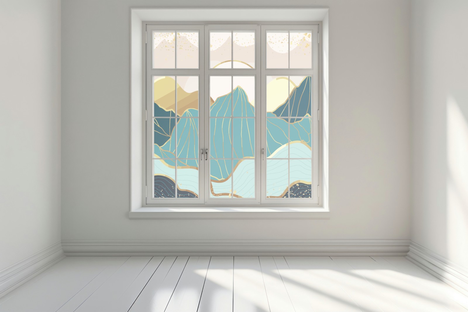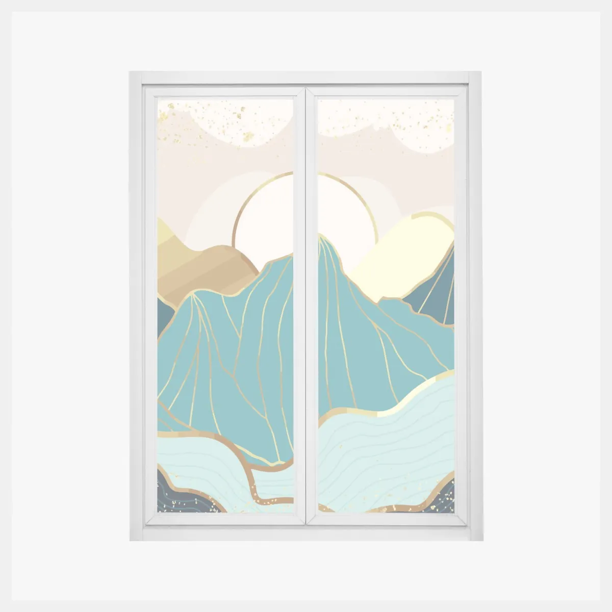 Fensteraufkleber türkise berge mit goldenen akzenten
