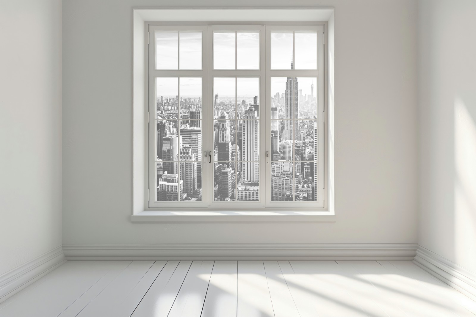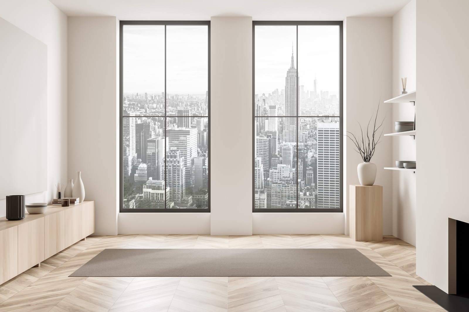 Ein beeindruckendes schwarz-weiß-Panorama der Skyline von New York verleiht jedem Raum urbane Eleganz und zeitlosen Stil.