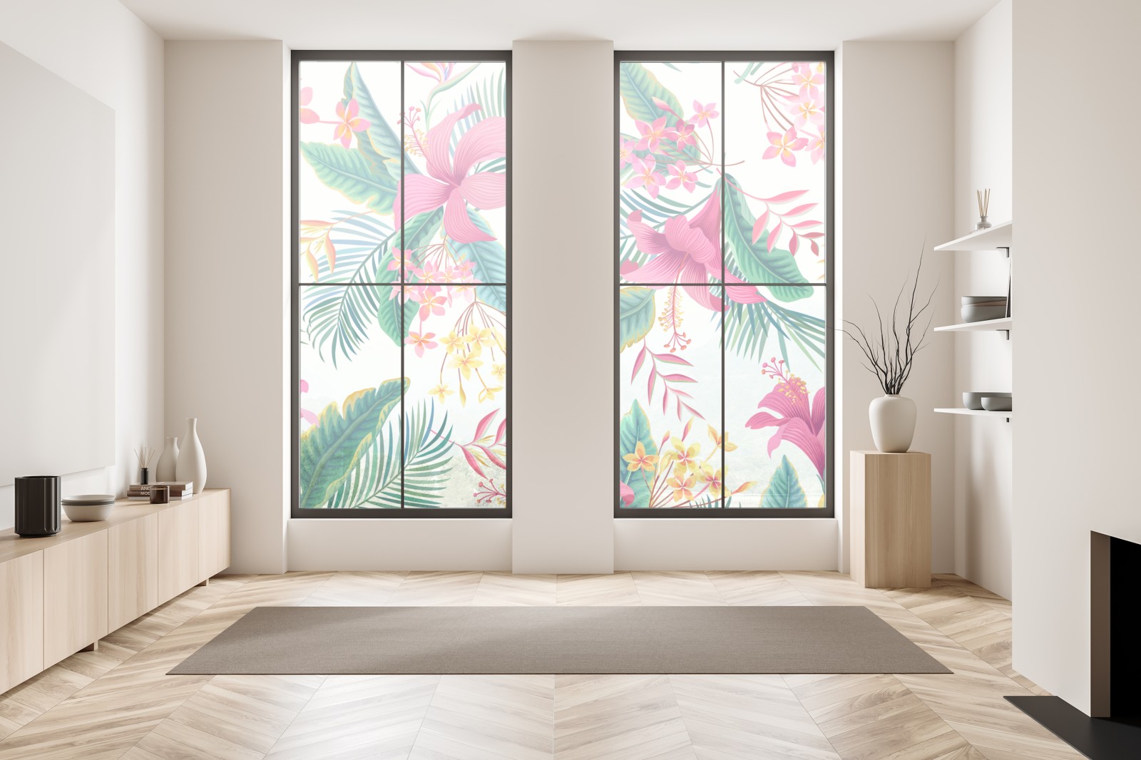 leuchtendes tropisches blumenmuster mit exotischen hibisken und üppigen blättern bringt sommerliche lebendigkeit in jeden raum.