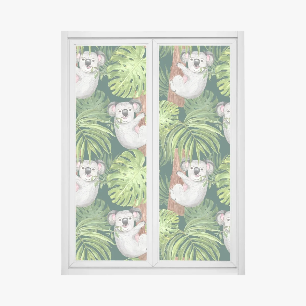 Fensteraufkleber Niedliches aquarell-koala-muster mit tropischen blättern