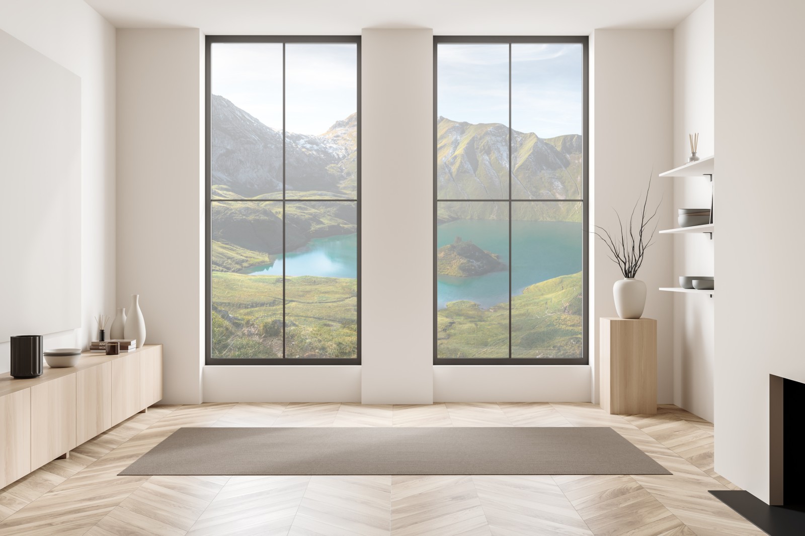 Bringen Sie alpine Ruhe in Ihr Zuhause mit diesem Panorama des türkisfarbenen Bergsees und der Insel am Schrecksee; perfekt für Naturfreunde und moderne Wohnräume.