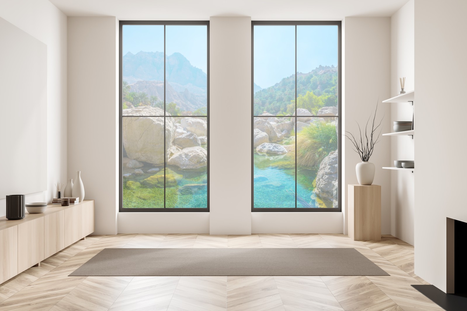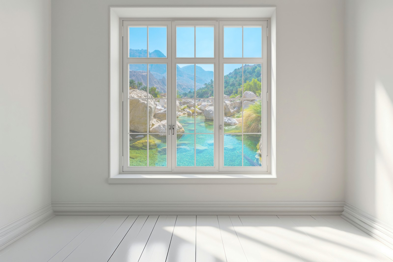 Eine ruhige Bergoase mit kristallklarem türkisfarbenem Wasser und beeindruckenden Felsen, ideal um naturnahe Atmosphäre ins Zuhause zu bringen.