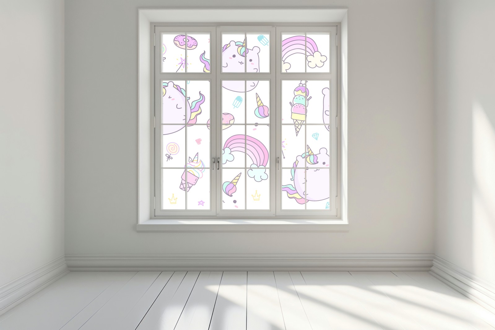 Fensteraufkleber verspieltes pastell-einhorn-katzenmuster