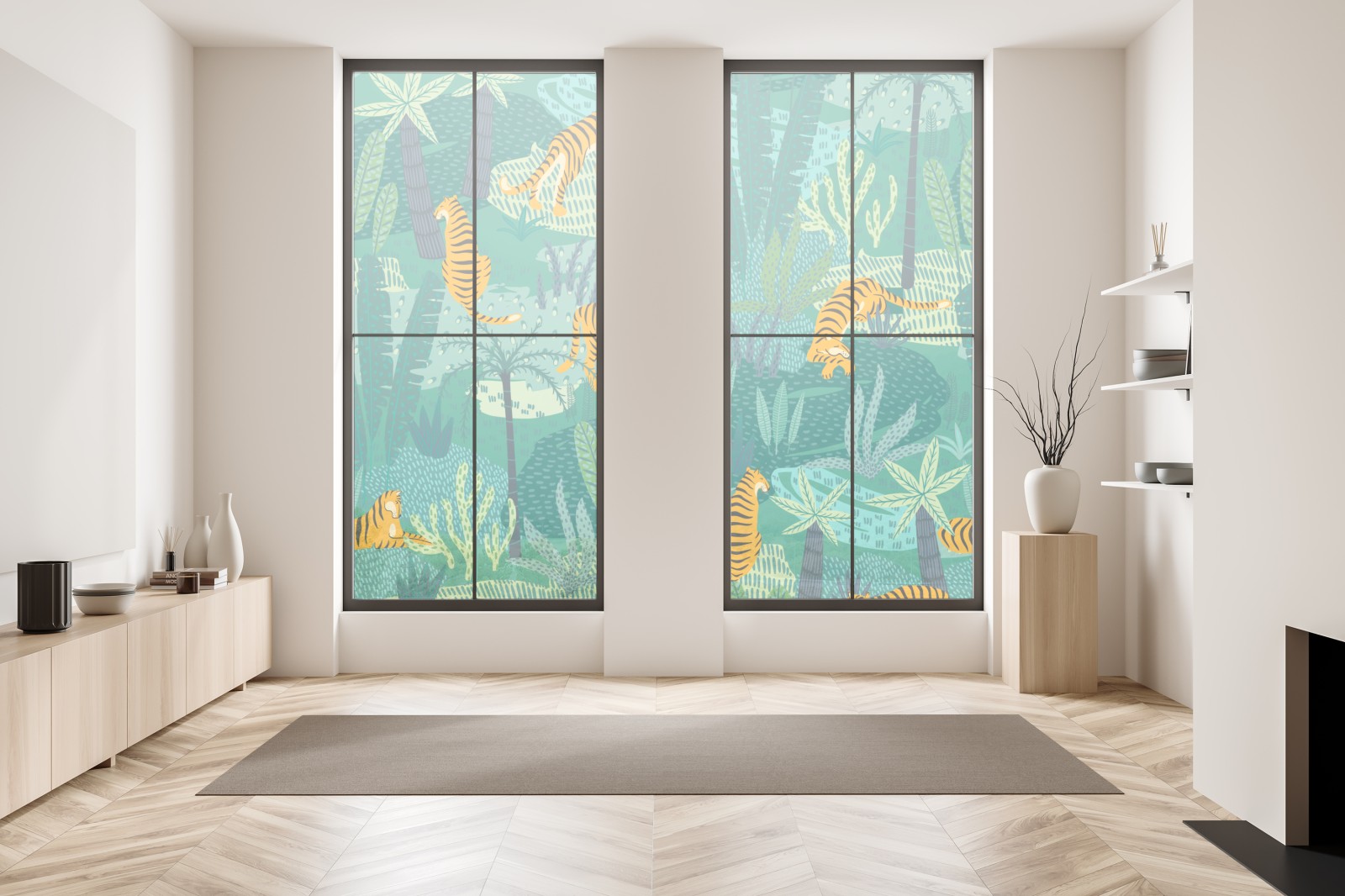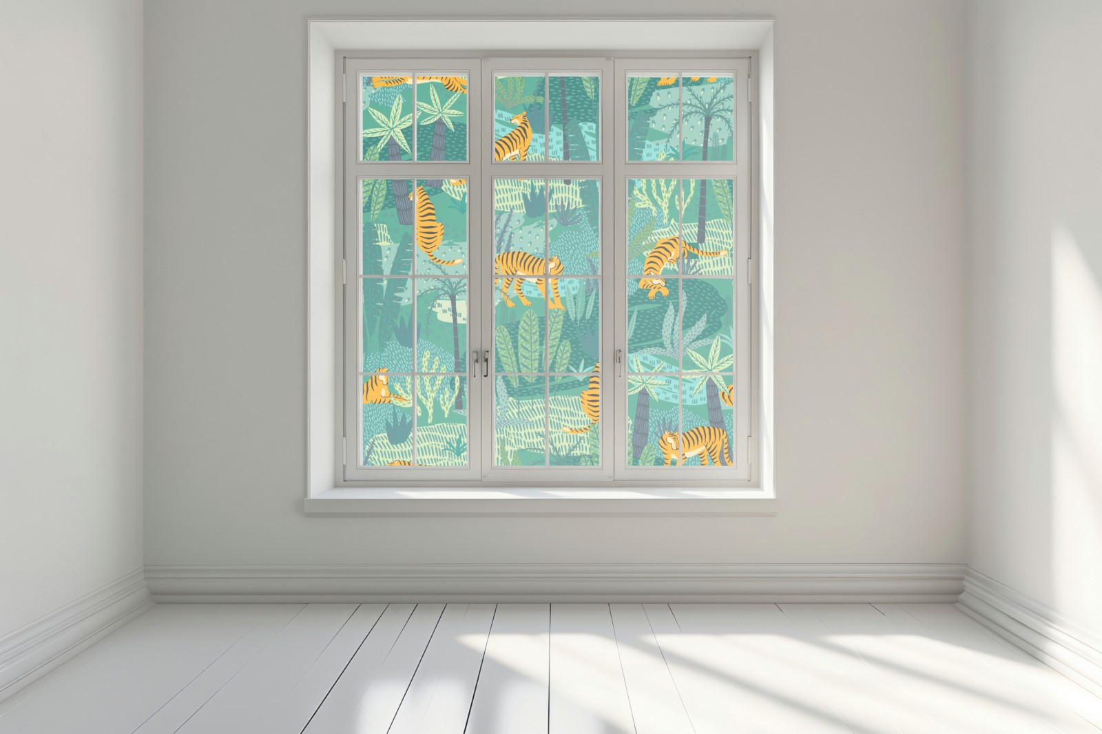 Fensteraufkleber tropischer dschungel mit tigern