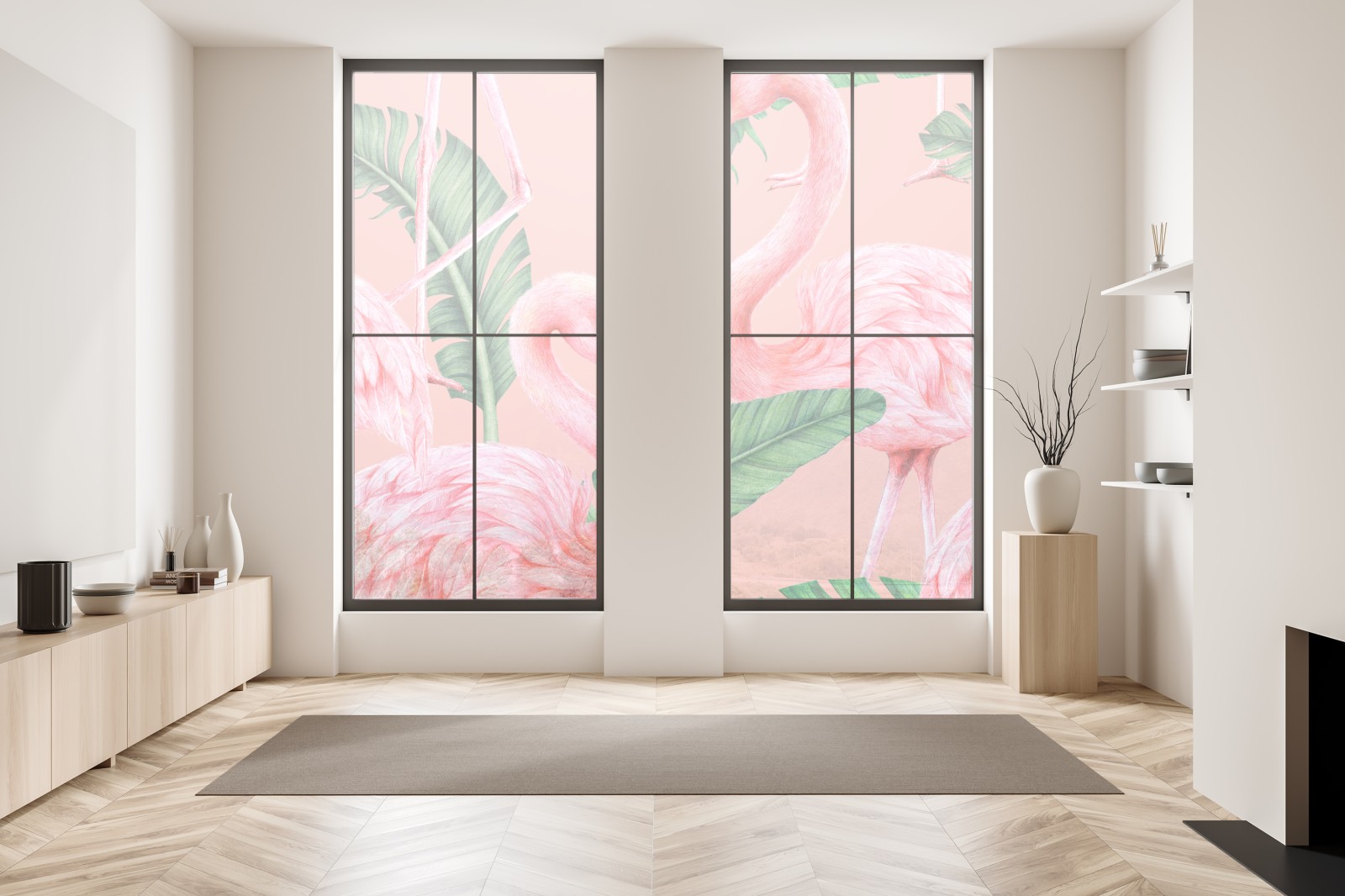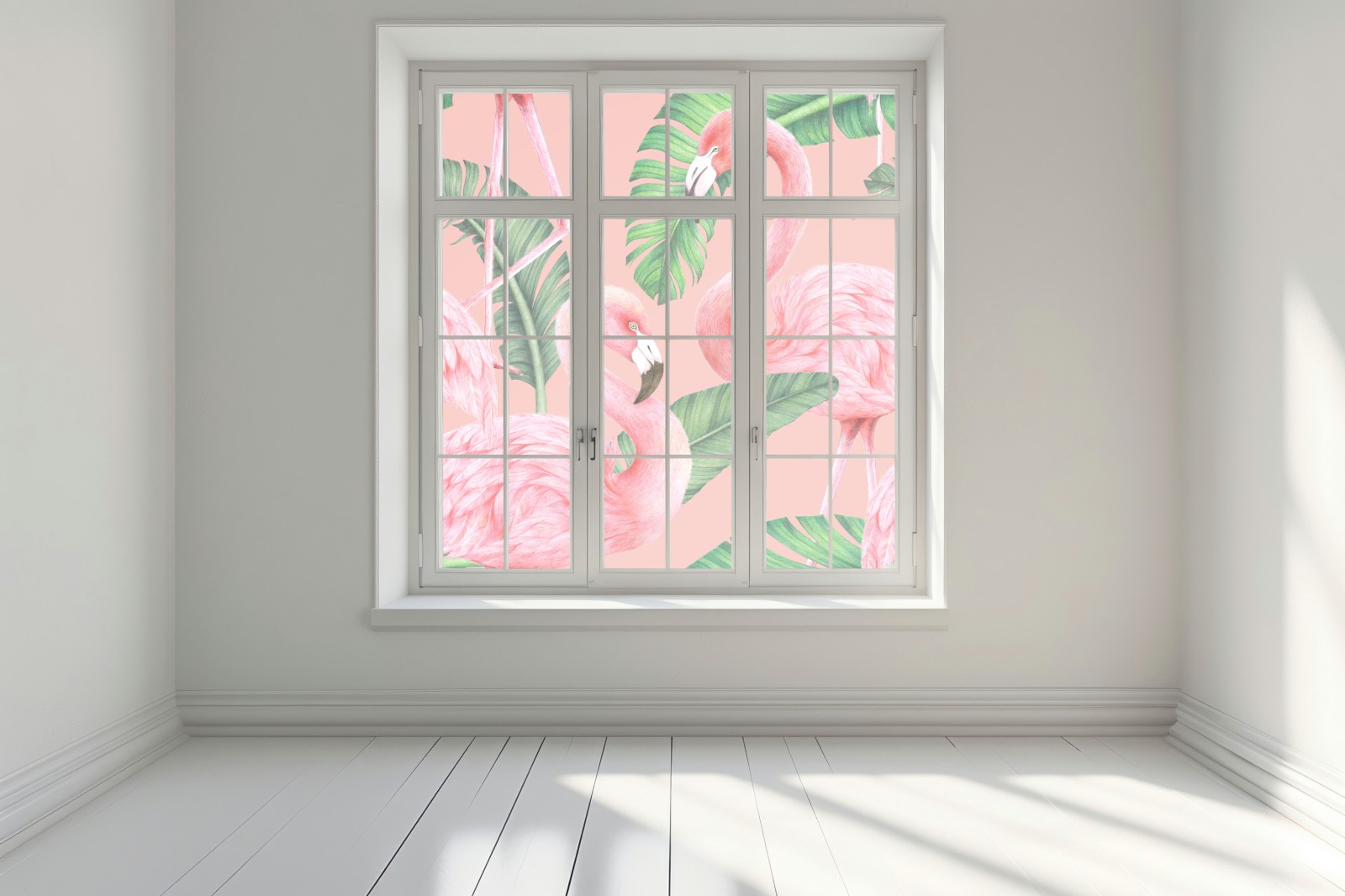 Fensteraufkleber rosa flamingo muster mit tropischen blättern