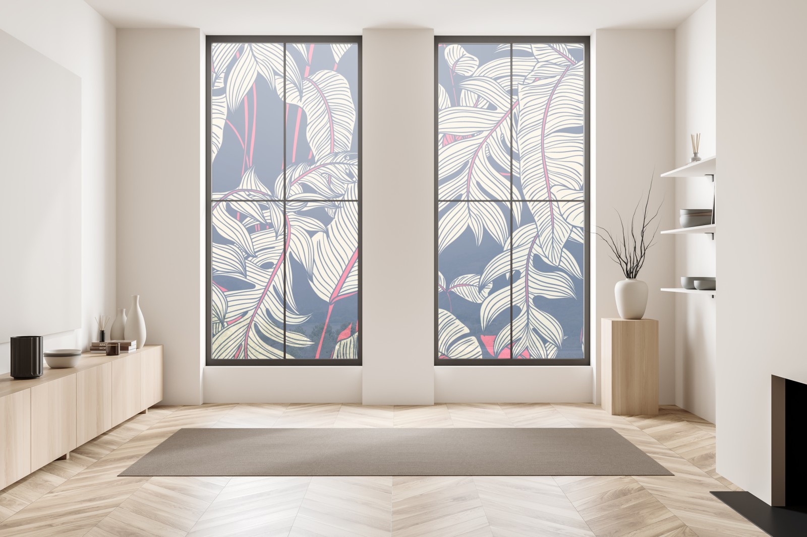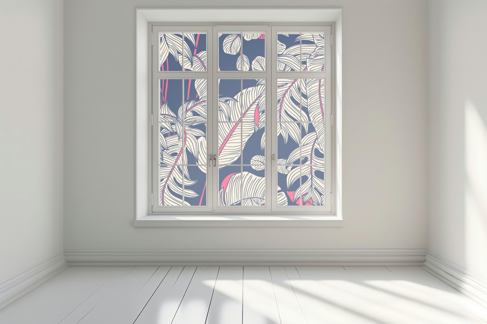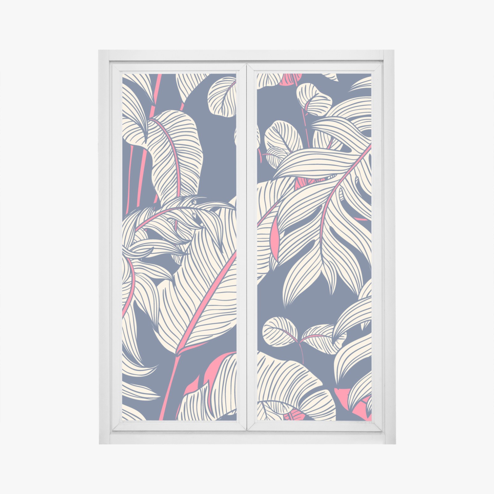 Fensteraufkleber marineblaues tropisches blattmuster