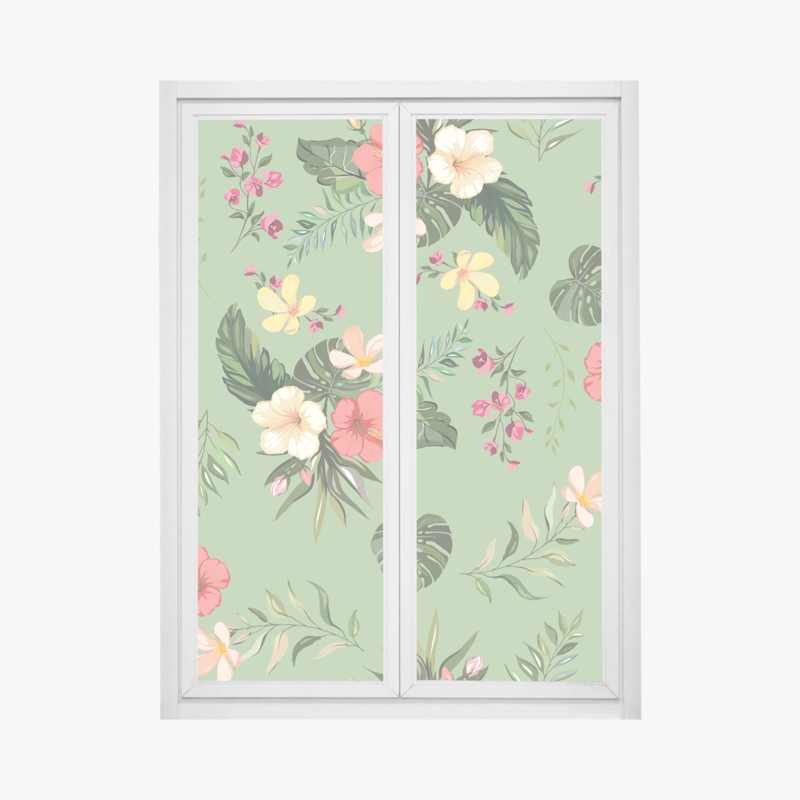 Fensteraufkleber Grünes tropisches hibiskusmuster