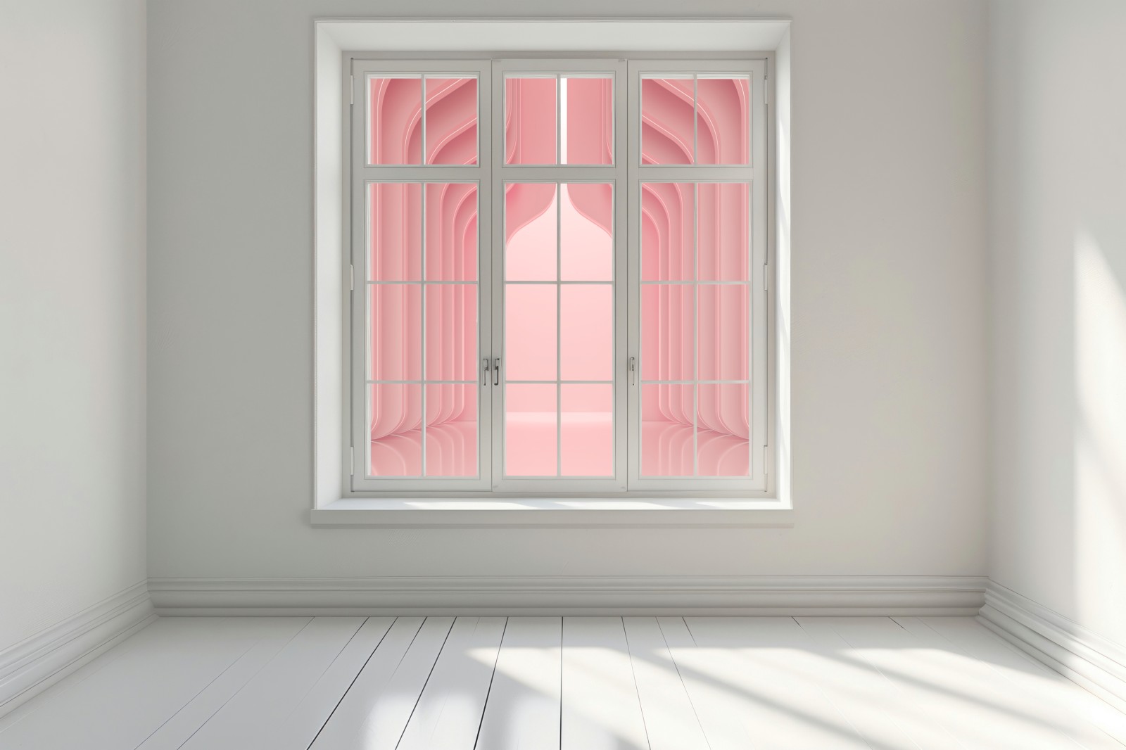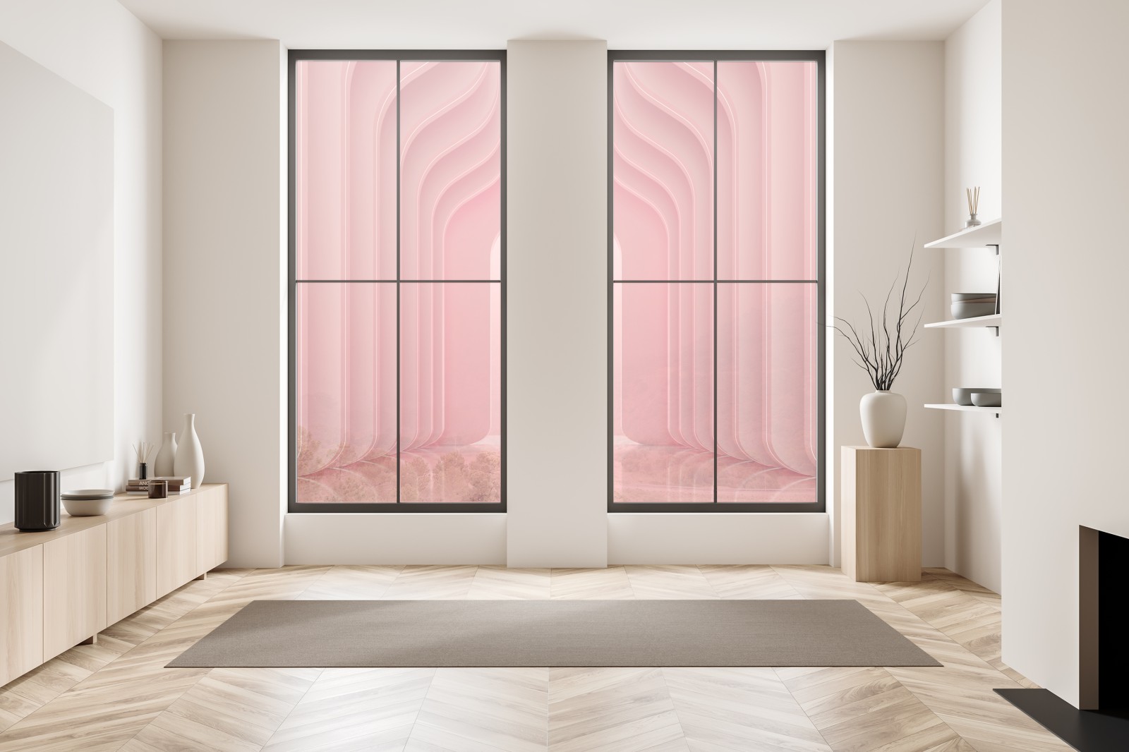 Fensteraufkleber zeitgenössisches korallenrosa architekturmotiv