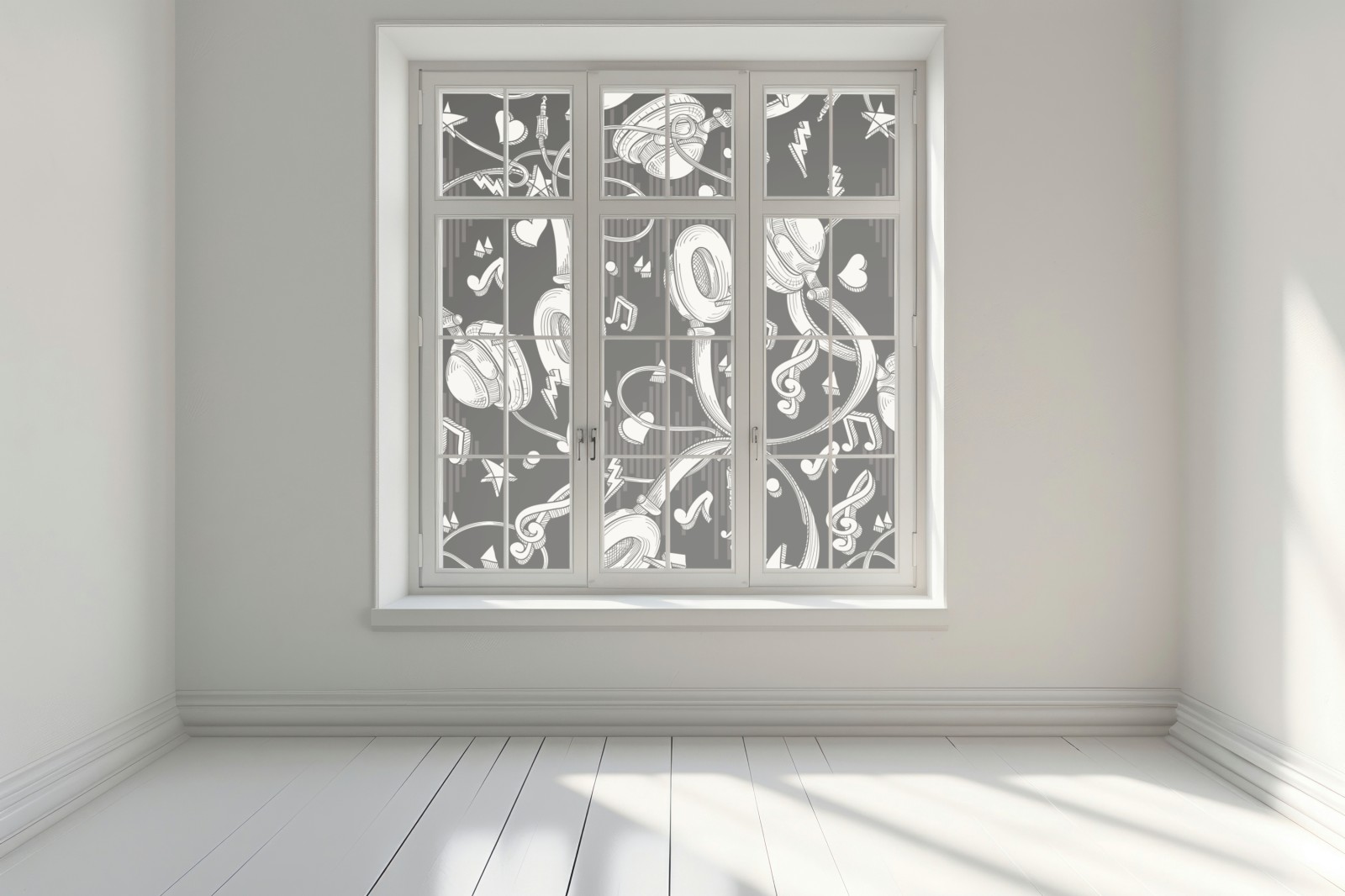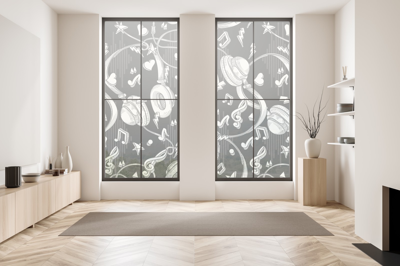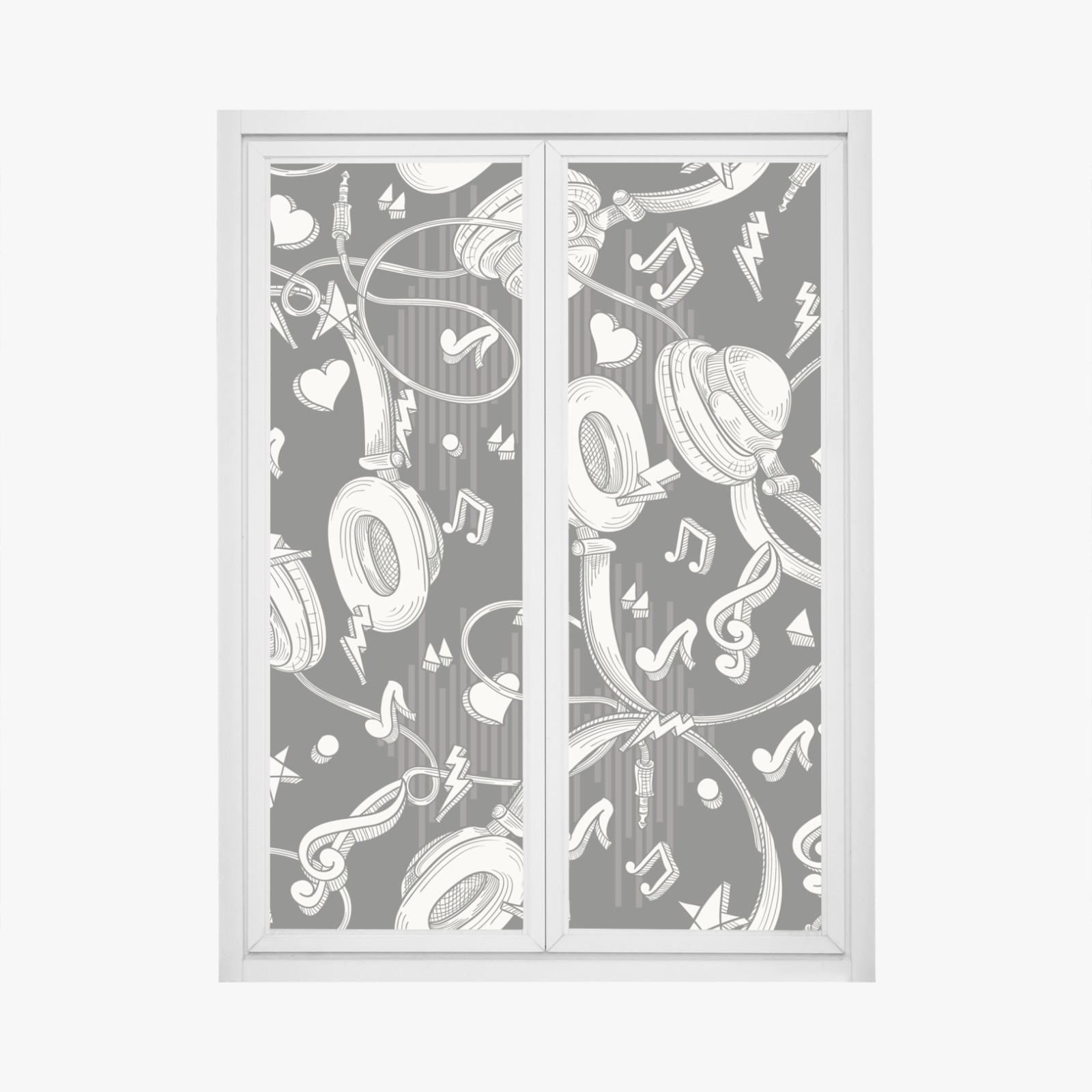 Fensteraufkleber monochromatisches muster mit kopfhörern und noten