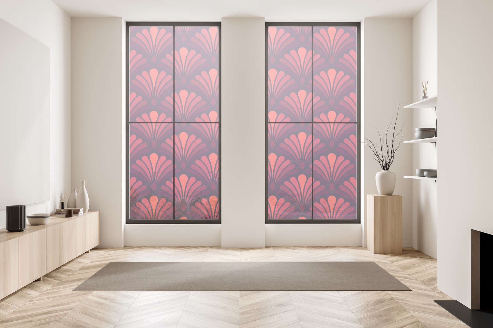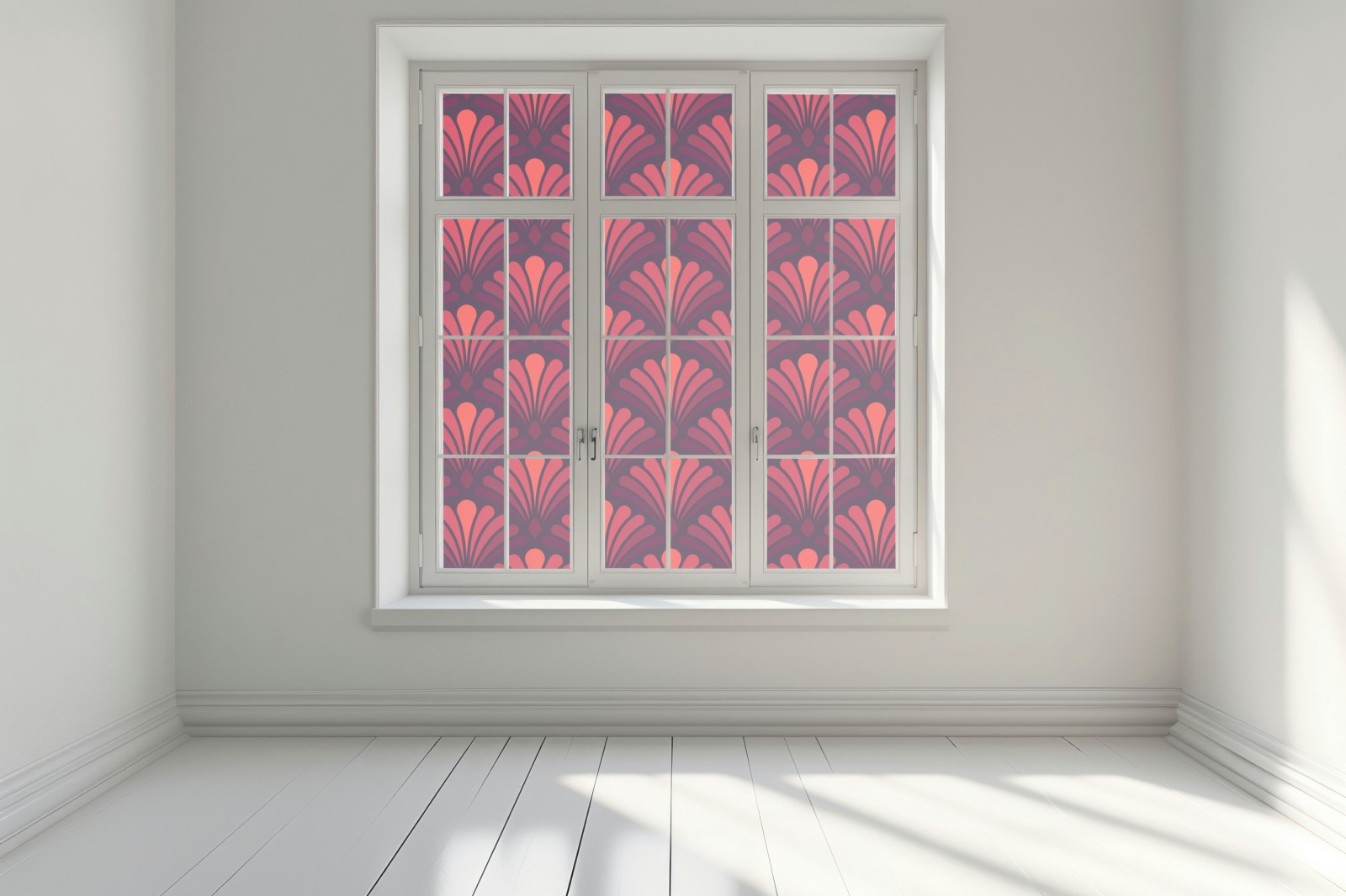 Fensteraufkleber geometrisches art-déco fächermuster in warmen rot- und violetttönen