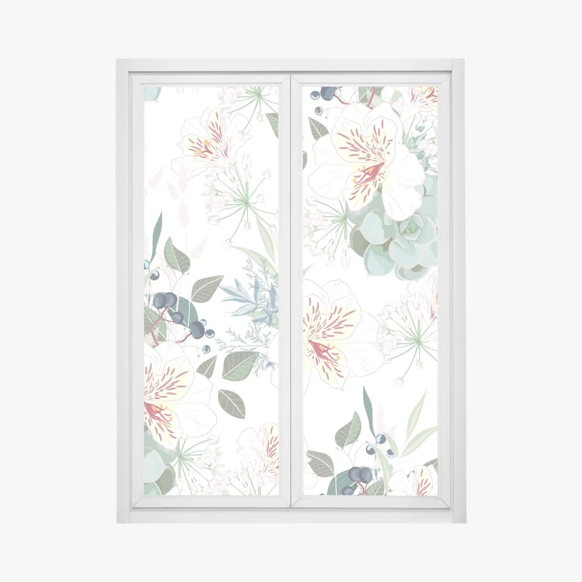 zarte pastellblumen und sukkulenten schaffen ein ruhiges botanisches muster, das jedem raum eleganz und gelassenheit verleiht.