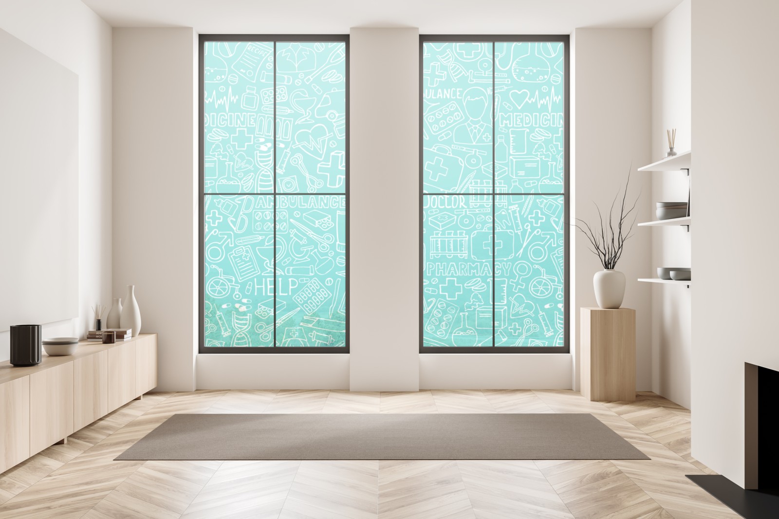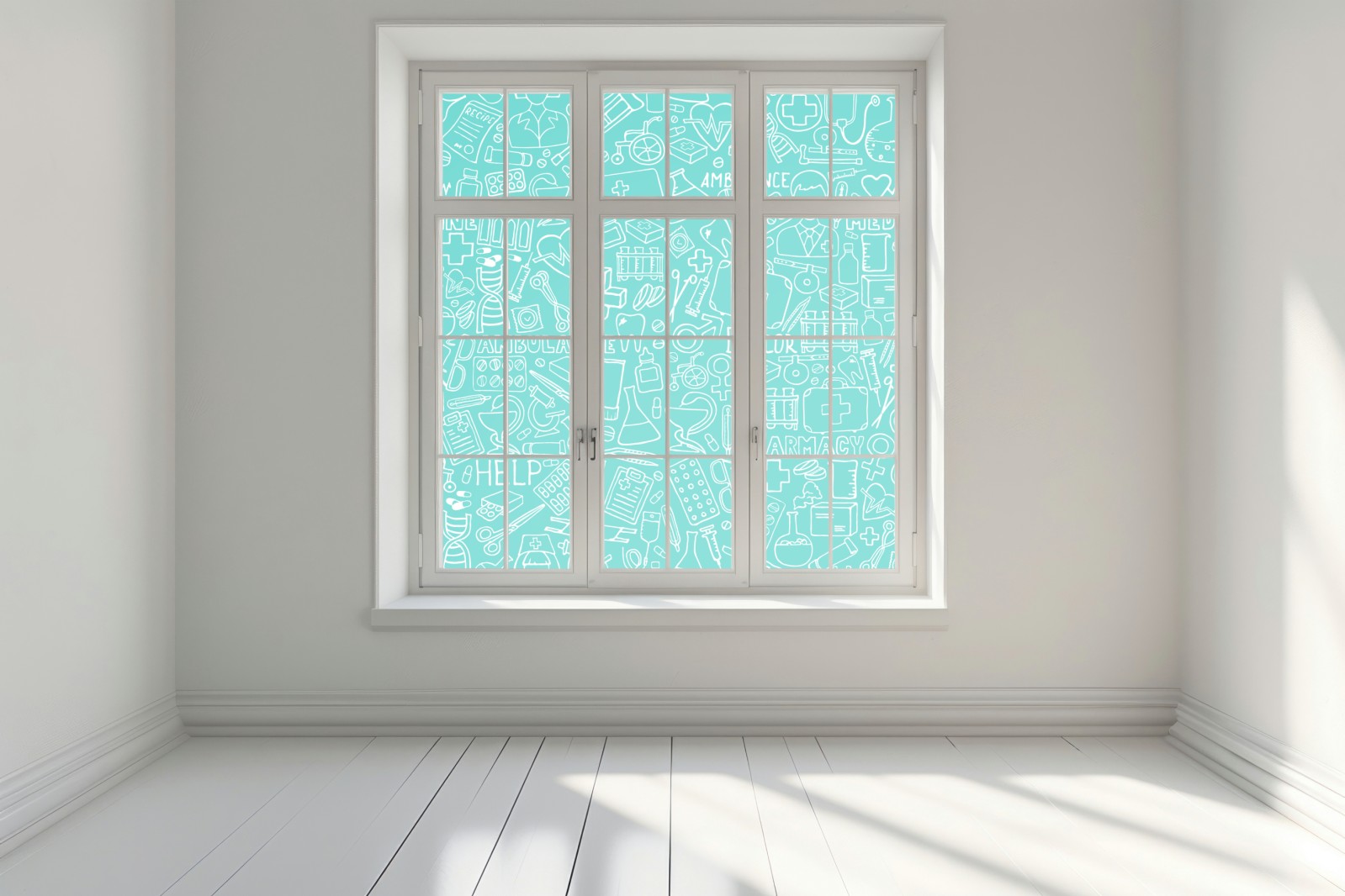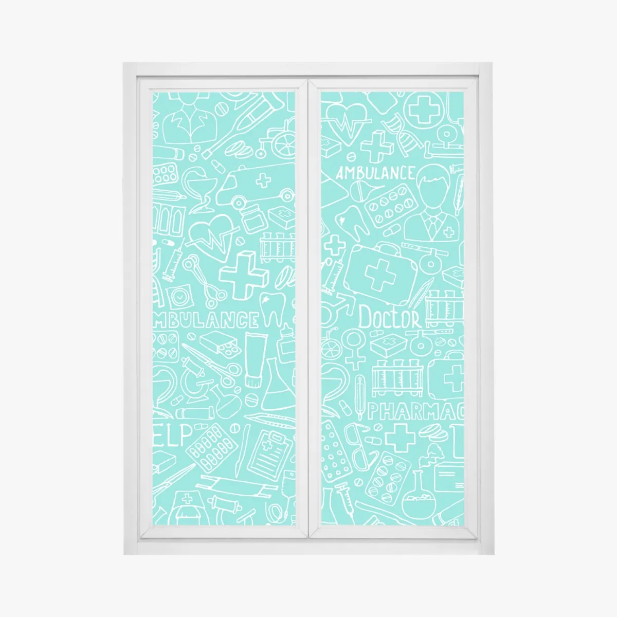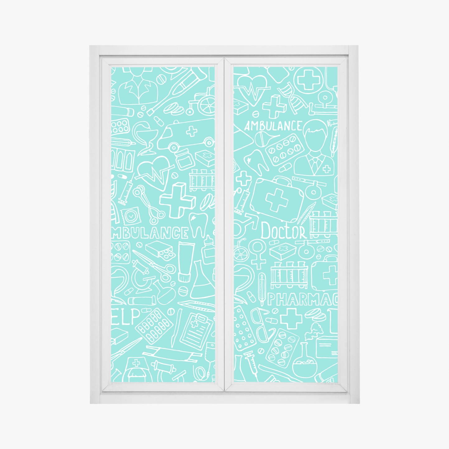 Fensteraufkleber türkises nahtloses muster mit medizinischen icons