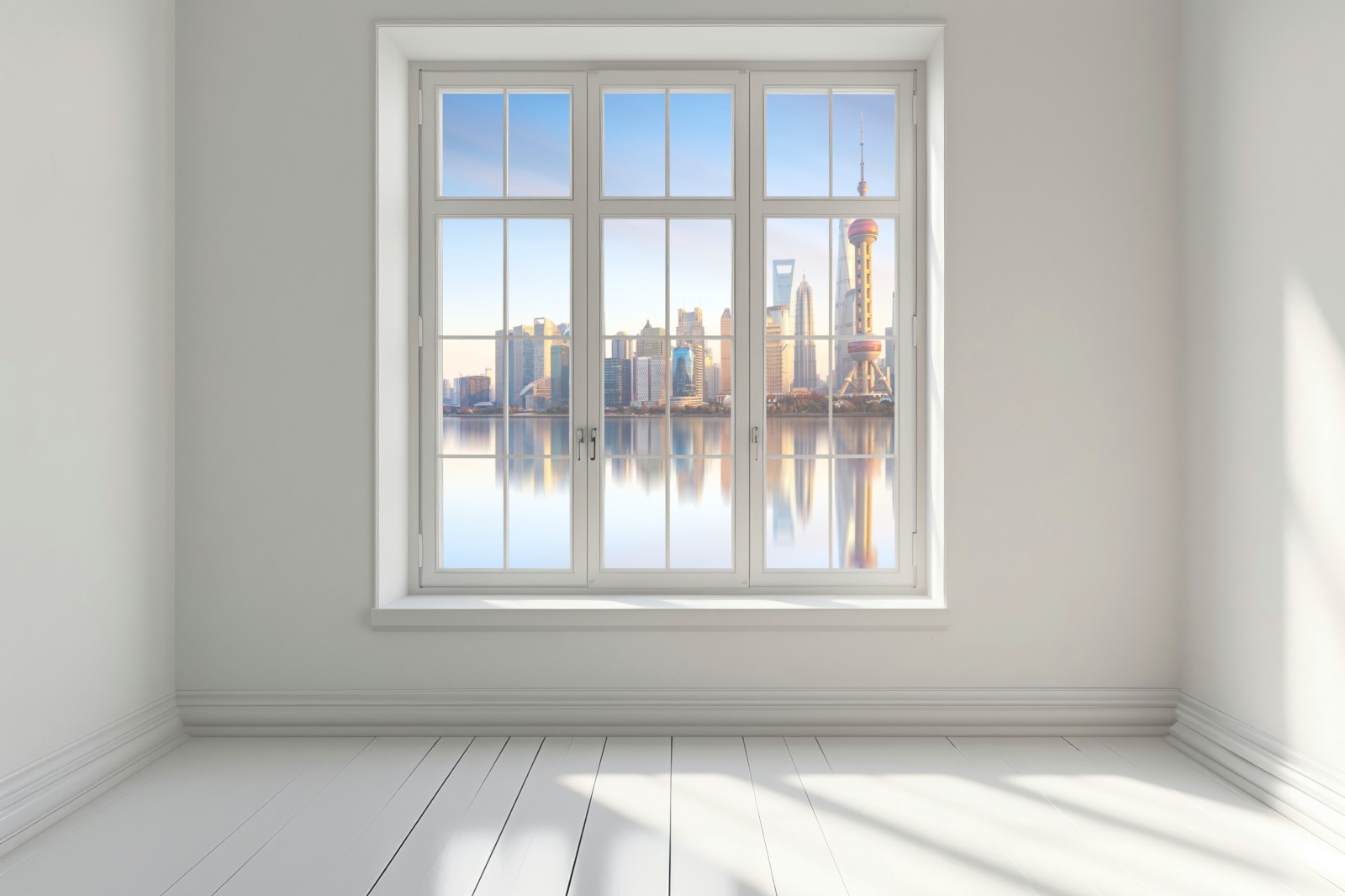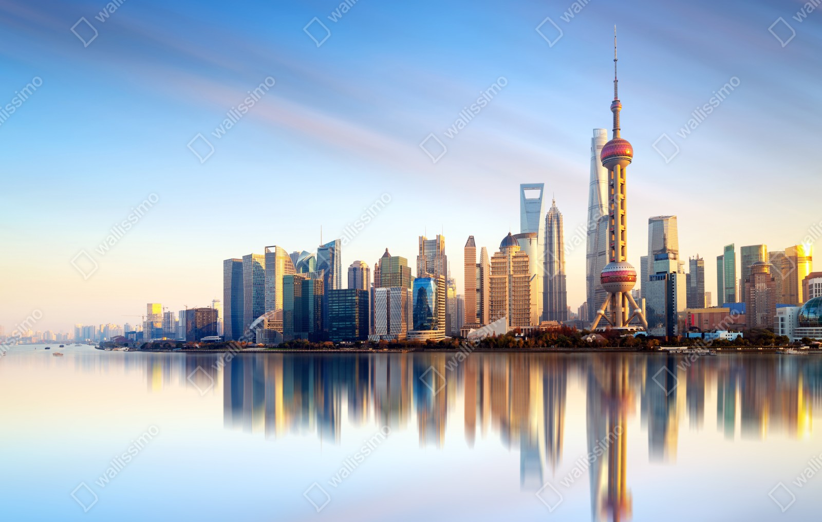 Fensteraufkleber Shanghai skyline spiegelung bei sonnenaufgang