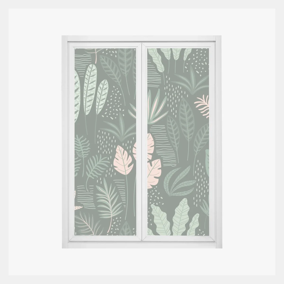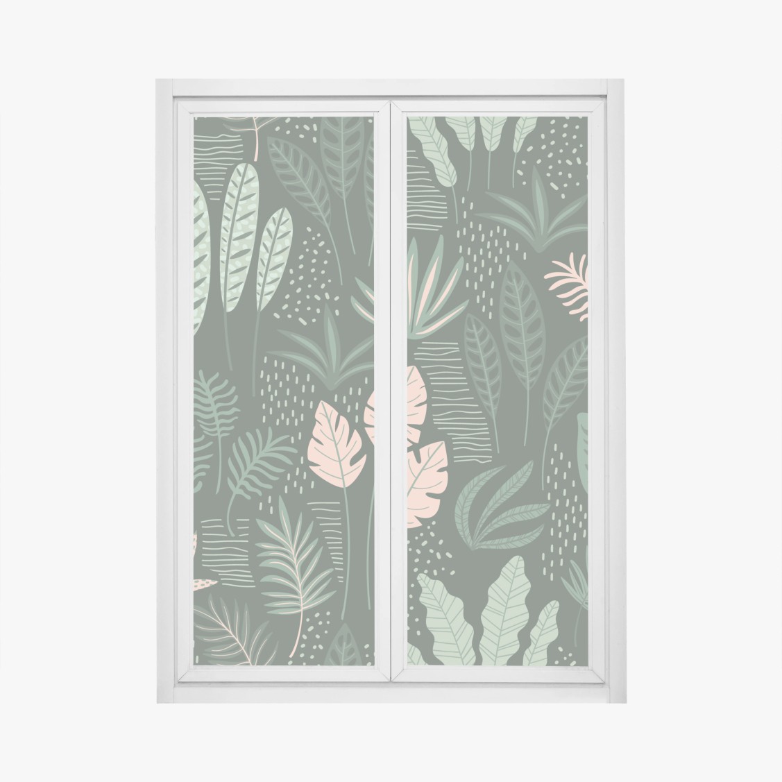 Fensteraufkleber Tropisches blättermuster in sanften grüntönen und rosa