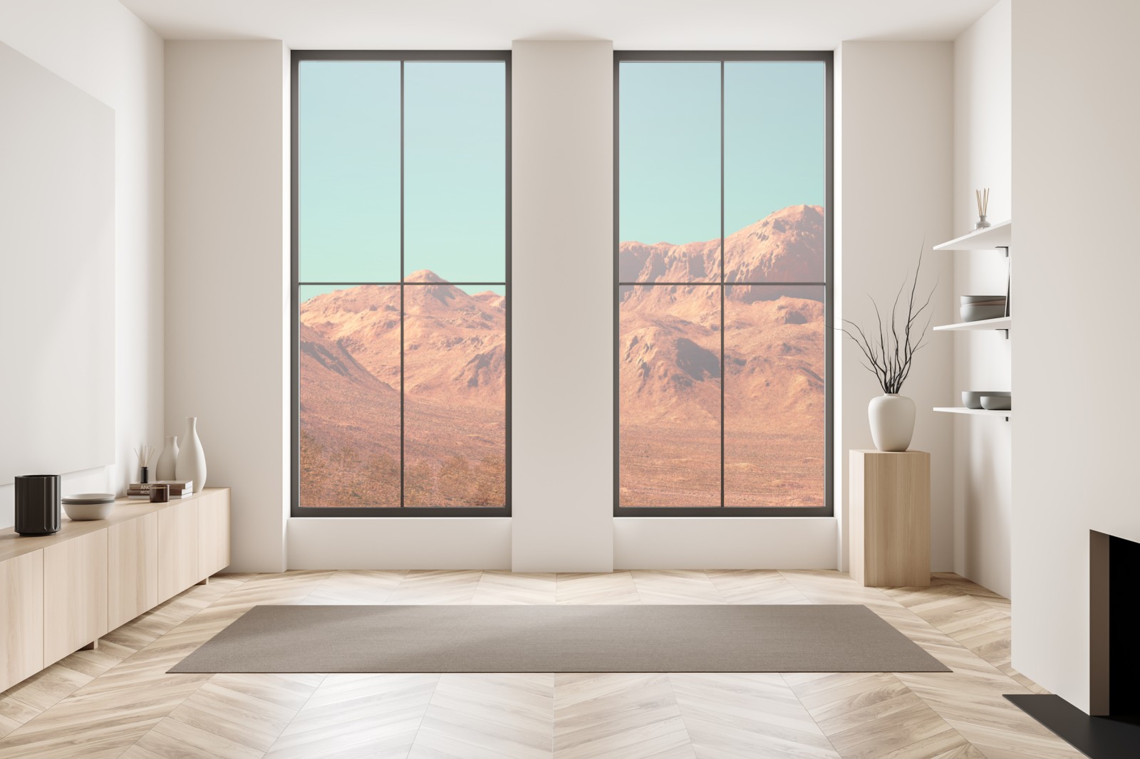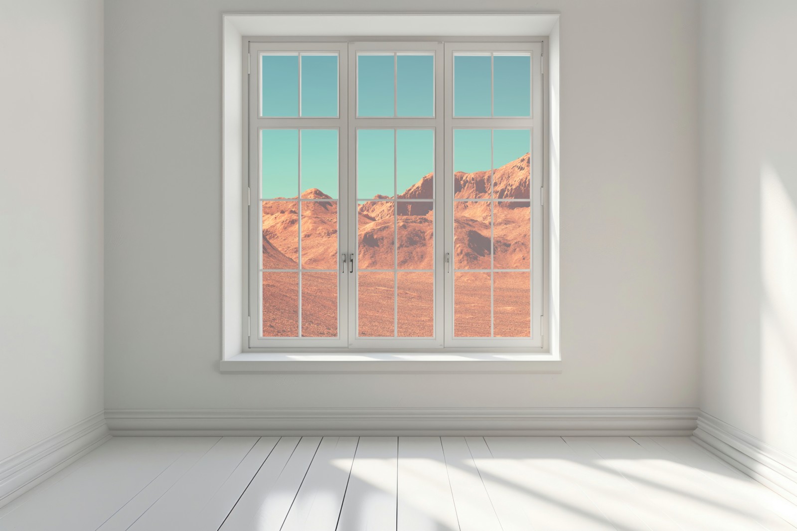 Beeindruckende 3D-Darstellung einer Marslandschaft in intensiven Rot- und Türkistönen, ideal für moderne Wohnräume.