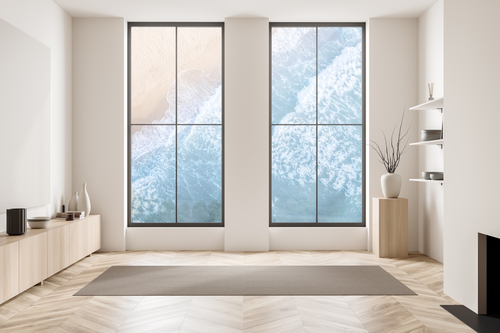 Beruhigende Luftaufnahme türkiser Wellen, die auf goldenen Sand treffen, ideal, um jedem Raum eine maritime Atmosphäre zu verleihen.