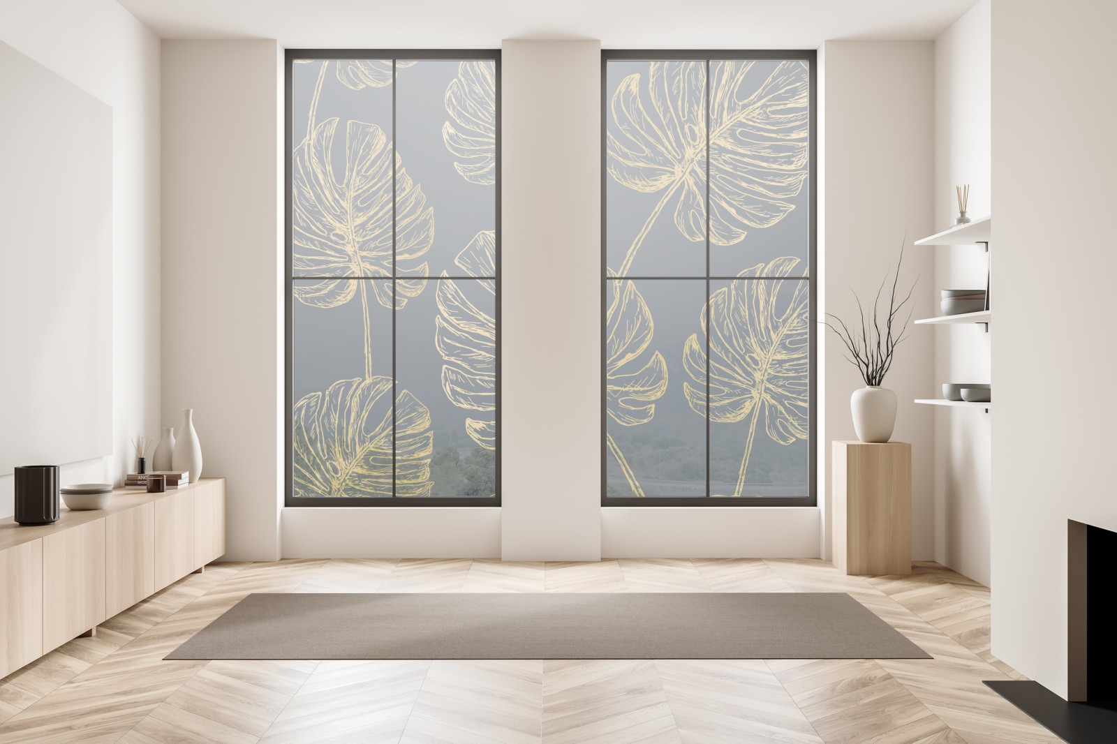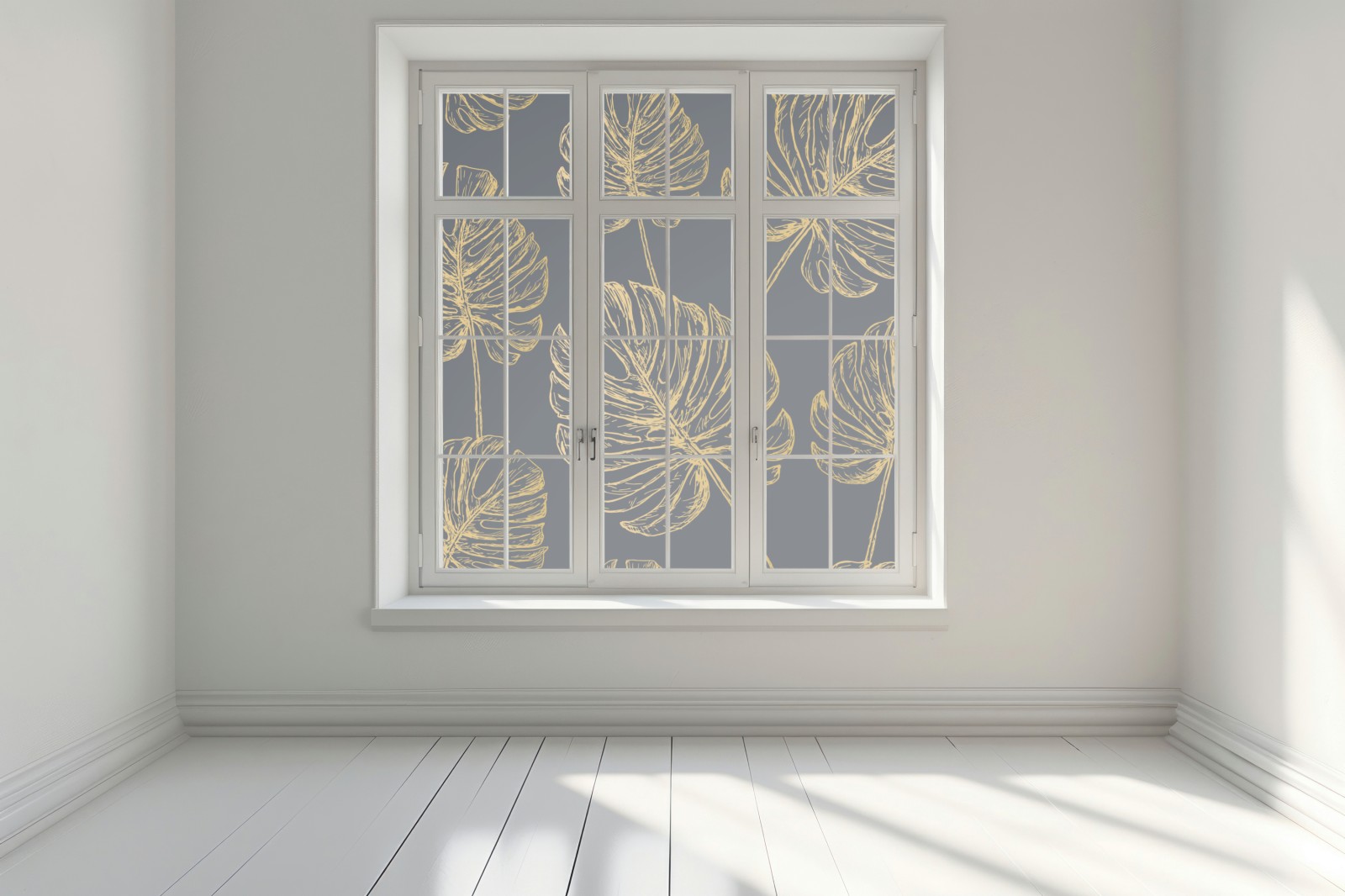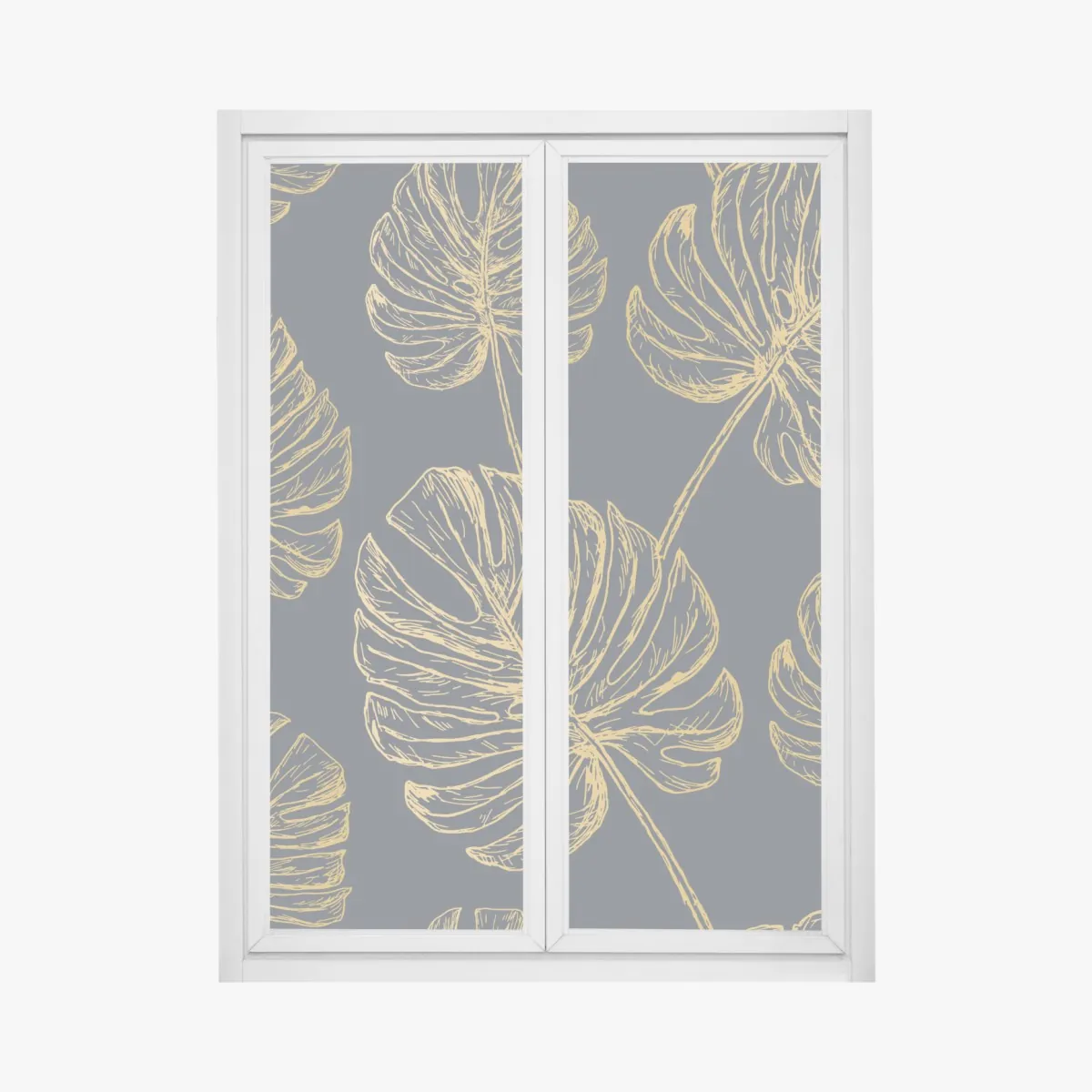 Fensteraufkleber goldene monstera-blätter auf dunklem hintergrund