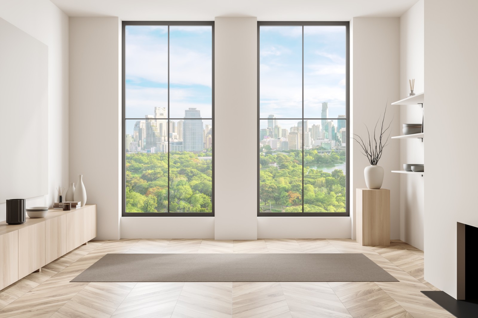 Bringen Sie die lebendige Skyline von Bangkok und das üppige Grün des Lumpini Park in Ihre Räume mit diesem Panorama, das urbane Energie und natürliche Ruhe vereint.