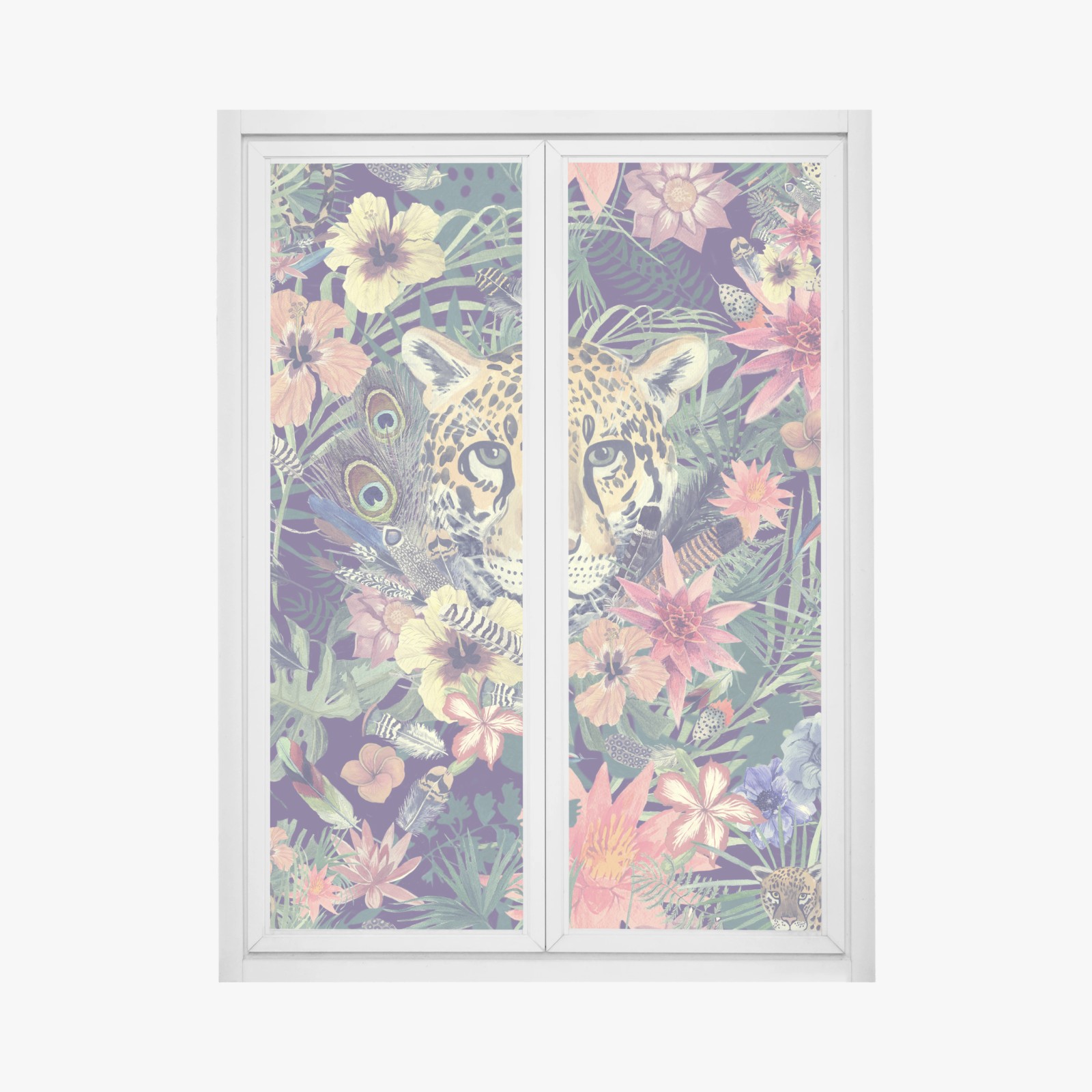 Fensteraufkleber Vintage aquarell leopard im tropischen dschungel