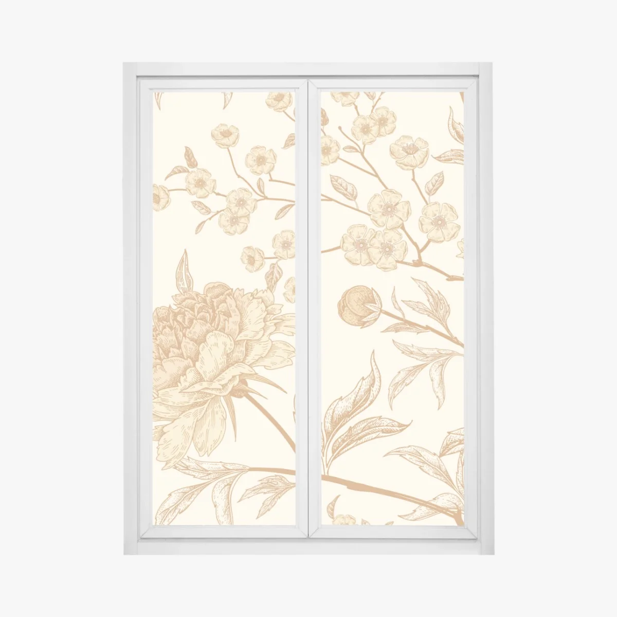 Fensteraufkleber Vintage beiges blumenmuster mit pfingstrosen
