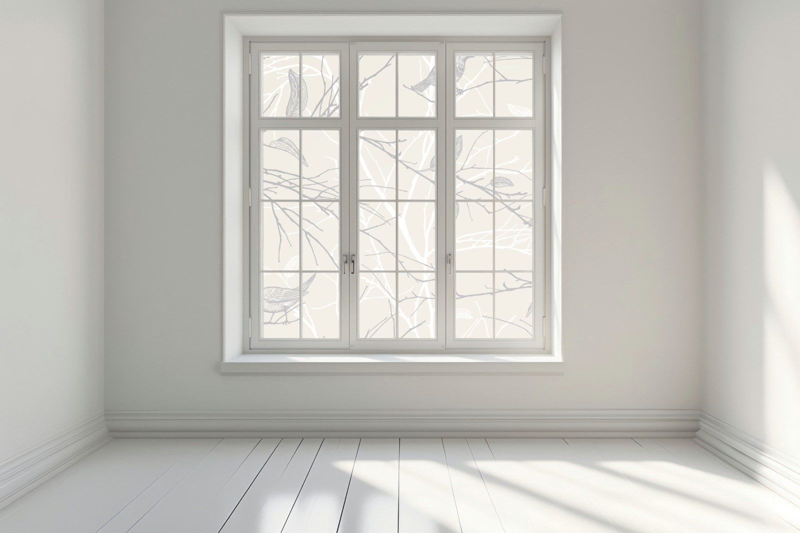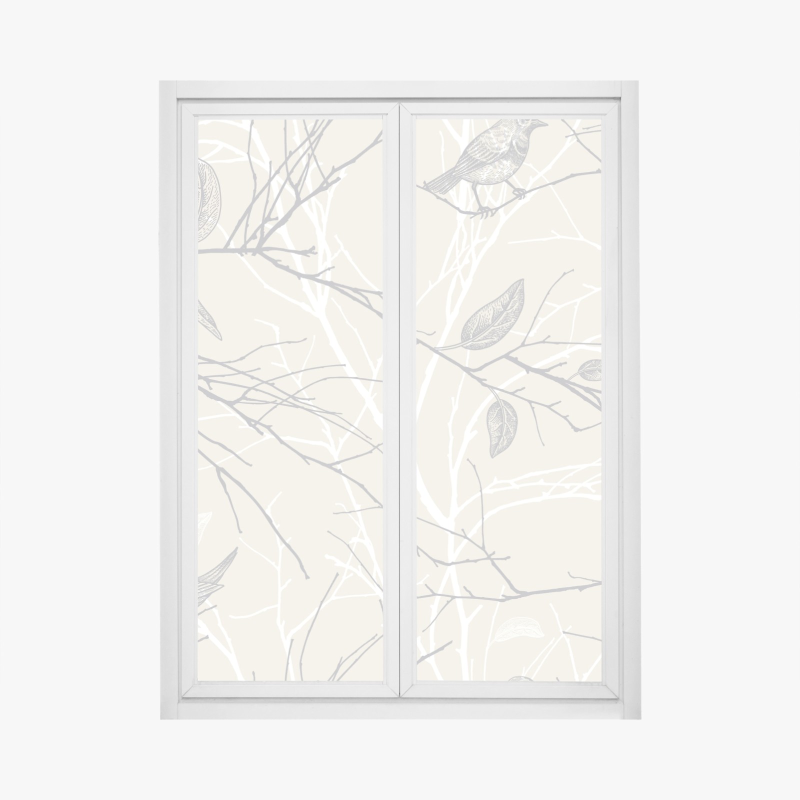 Fensteraufkleber zartes beiges muster mit vögeln und ästen