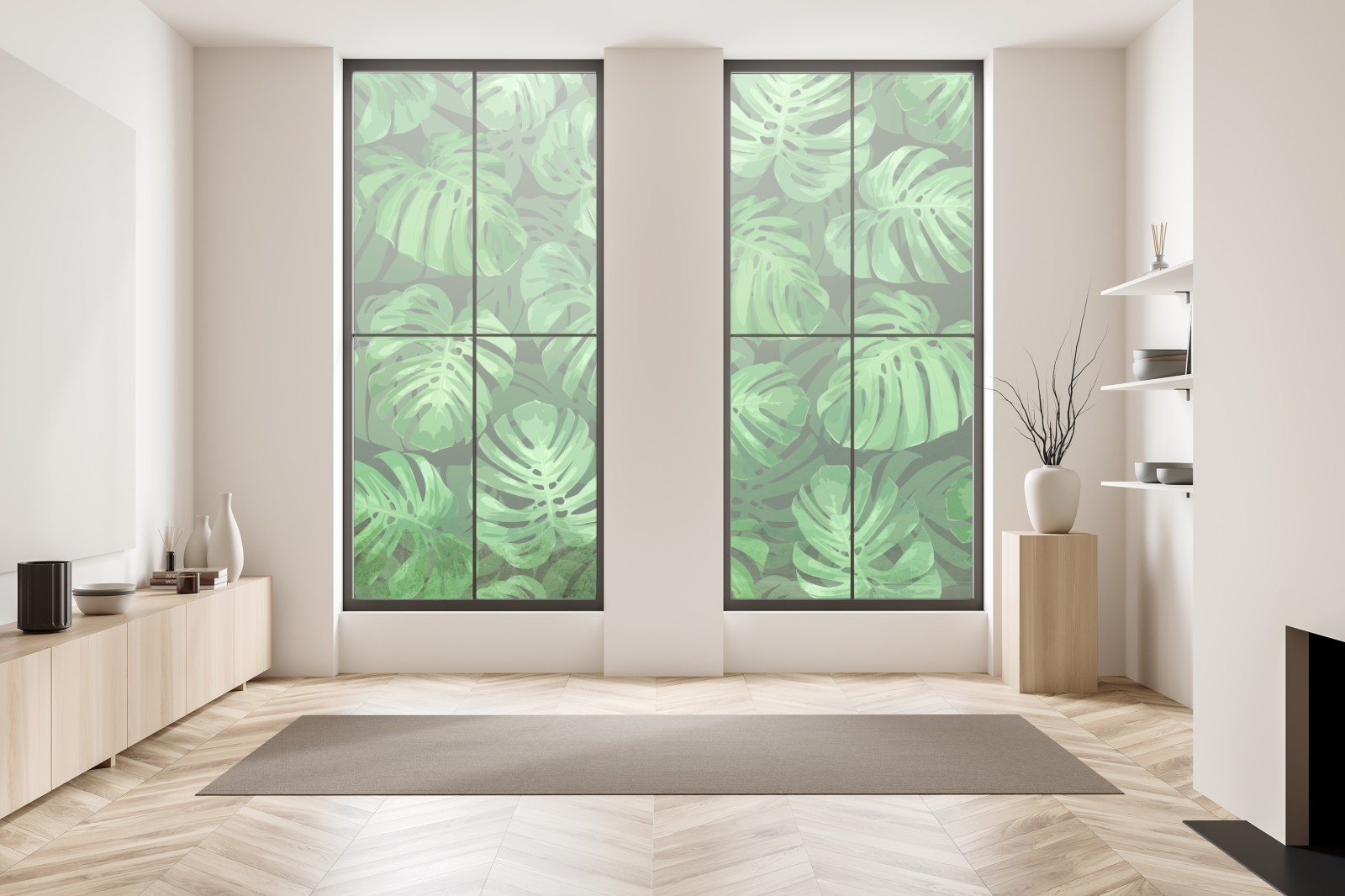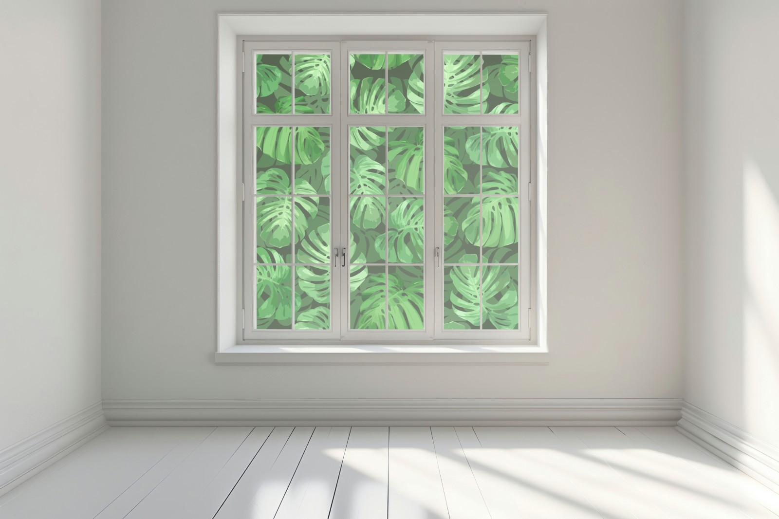 Üppige tropische Monstera-Blätter bilden ein lebendiges botanisches Muster, das jedem Raum natürliche Frische verleiht.