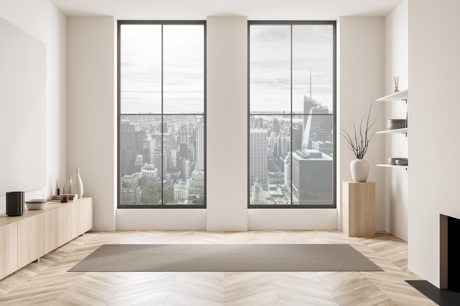 Eine eindrucksvolle monochrome Panoramaaufnahme von New York, die jedem Raum moderne Eleganz verleiht.